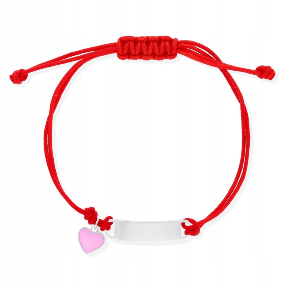 Bransoletka na sznurku serce gładka blaszka Srebro 925