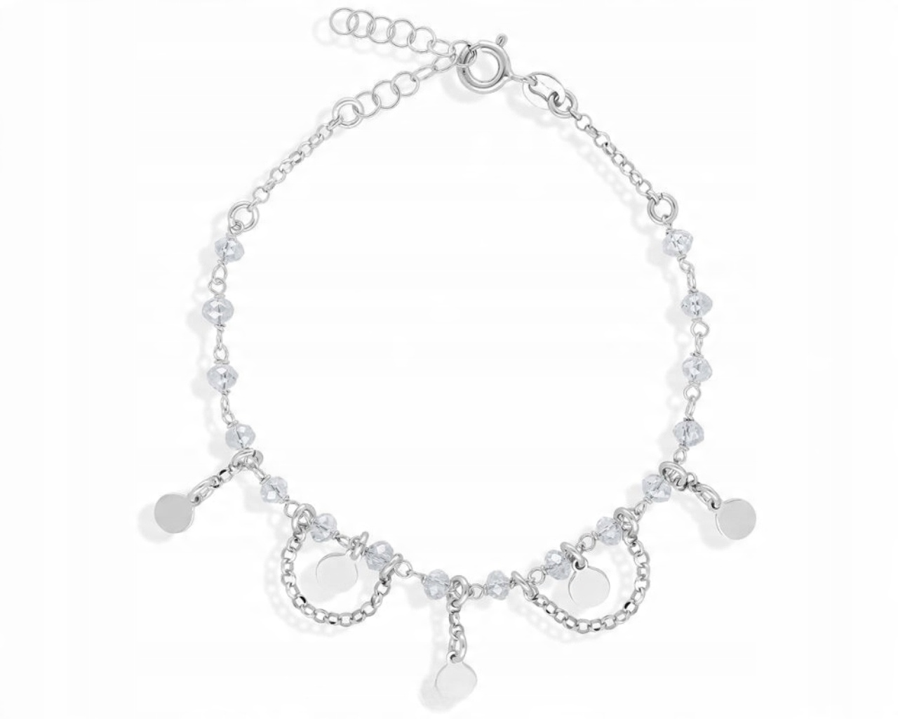 Bransoletka srebrna cyrkonie i gładkie talarki Srebro 925