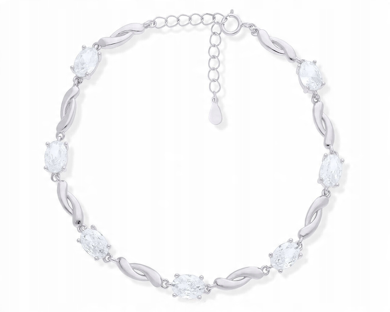 Bransoletka srebrna ozdobiona cyrkoniami, srebro o próbie 925.