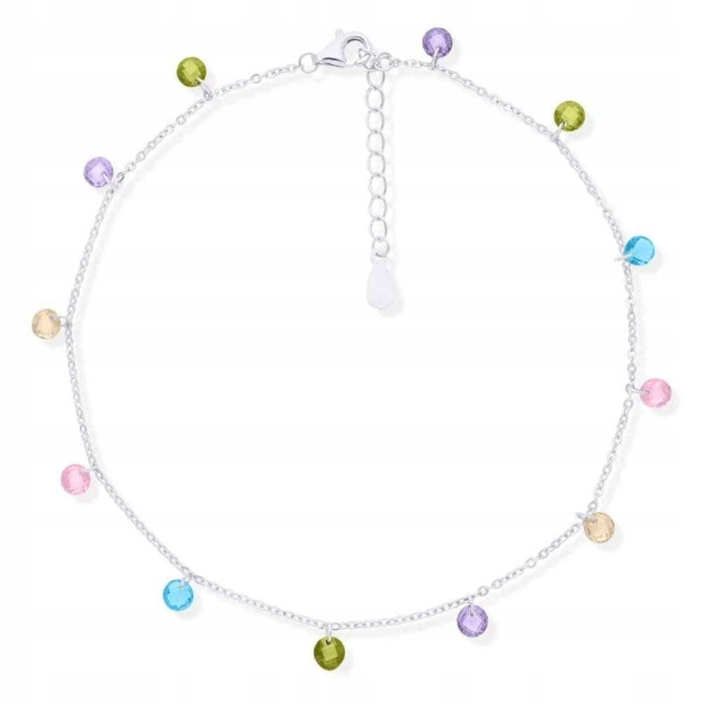 Bransoletka srebrna na nogę kolorowe cyrkonie Srebro 925 r.24