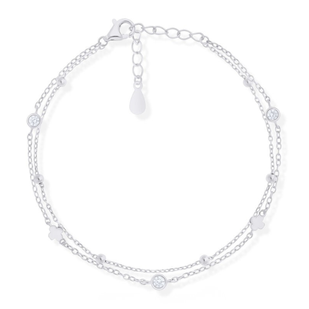 Bransoletka srebrna podwójna cyrkonie i kuleczki Srebro 925