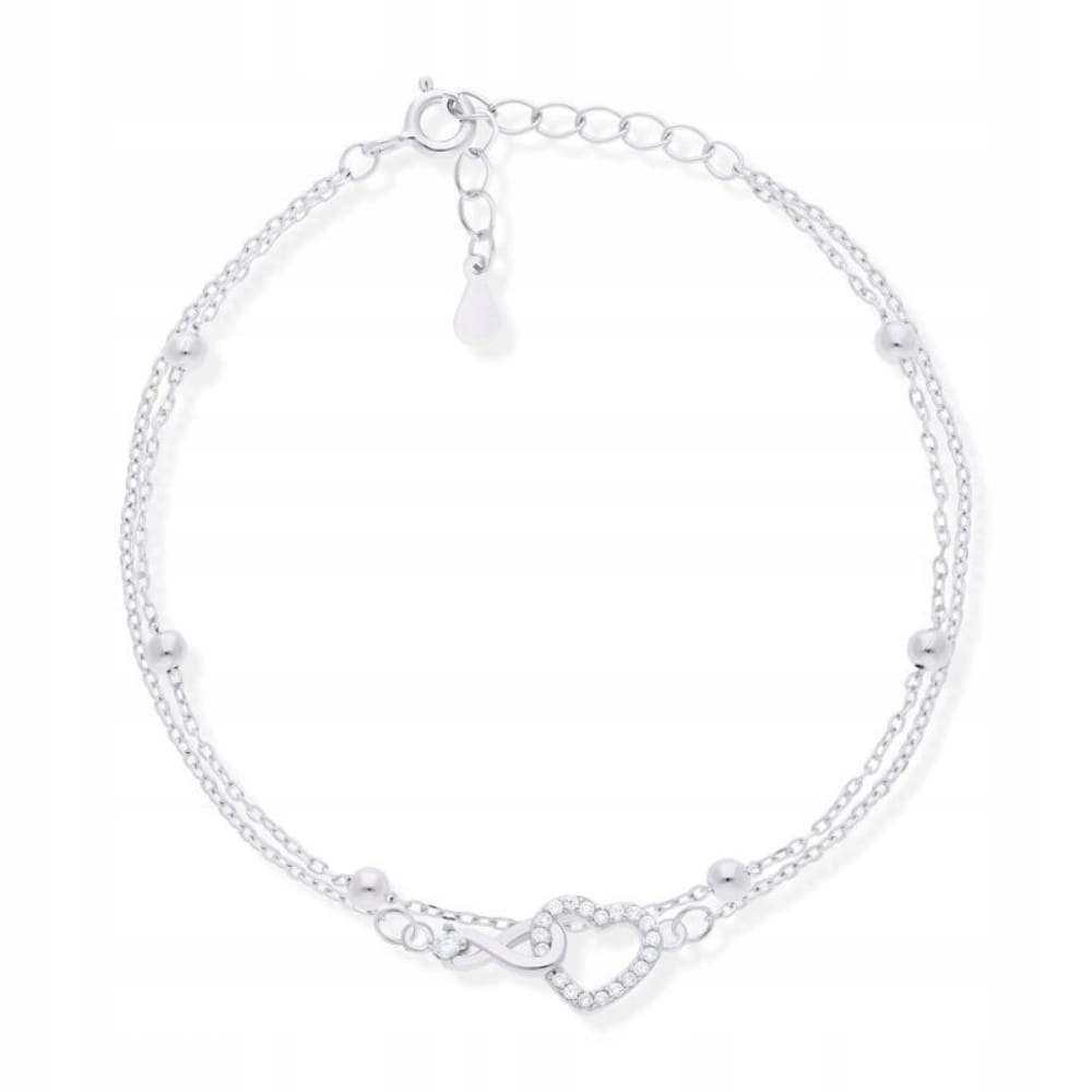 Bransoletka srebrna serce i infinity podwójna Srebro 925