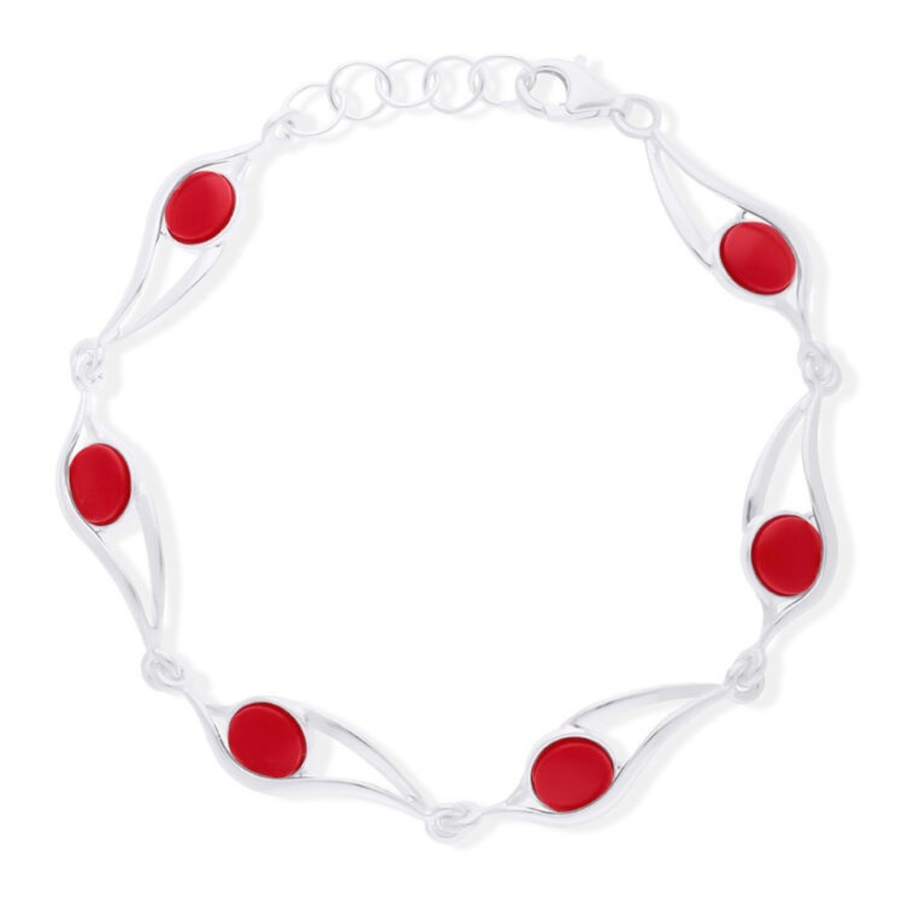 Bransoletka srebrna z czerwonym koralem Srebro 925