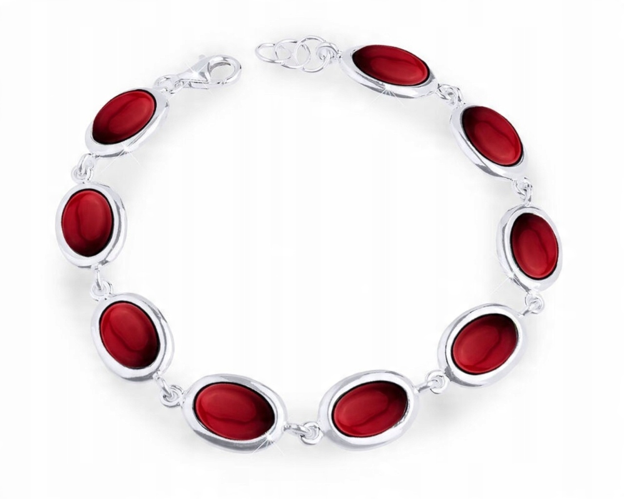 Bransoletka srebrna z czerwonym koralem damska Srebro 925