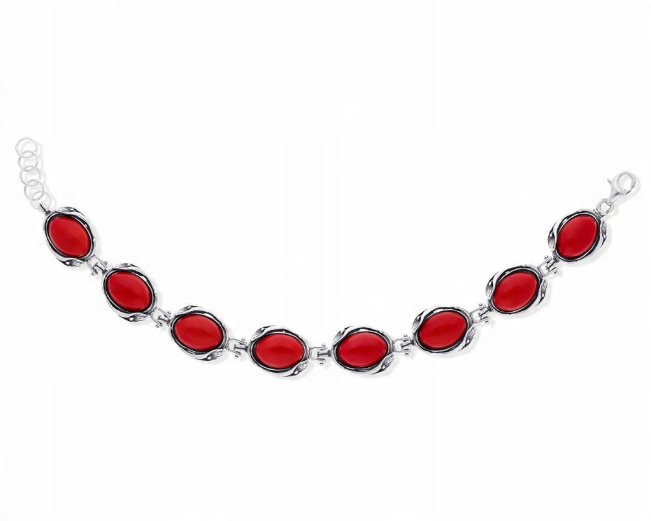 Bransoletka srebrna z czerwonymi koralami Srebro 925
