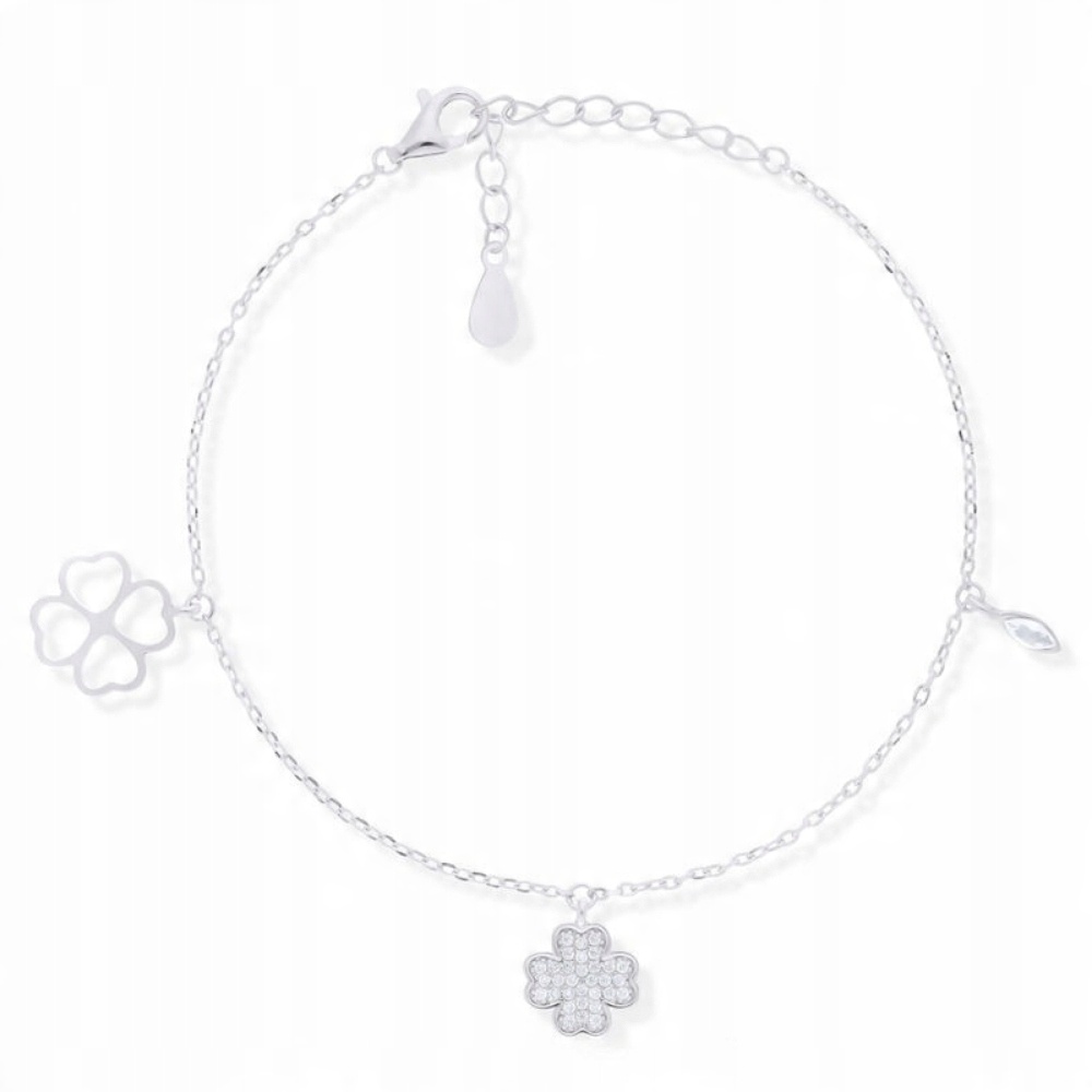 Bransoletka srebrna z koniczynami cyrkonie Srebro 925