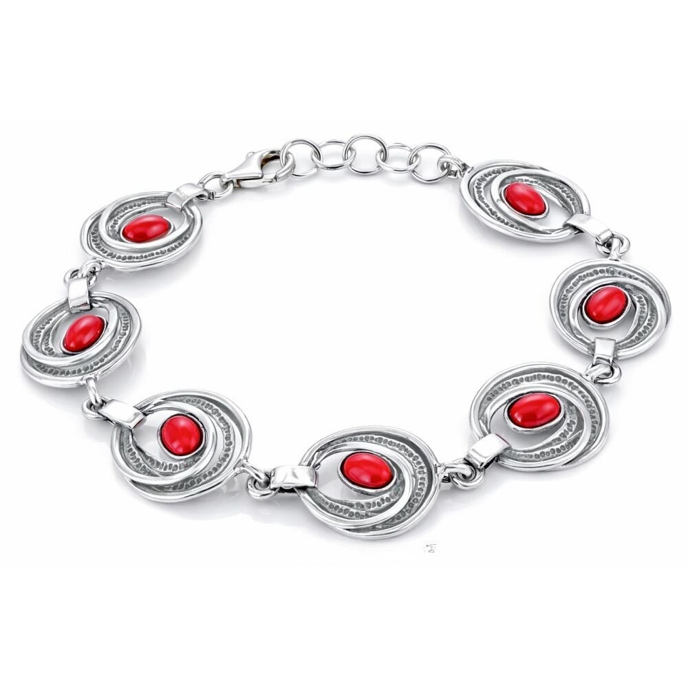 Bransoletka srebrna z koralem Owalne elementy Srebro 925