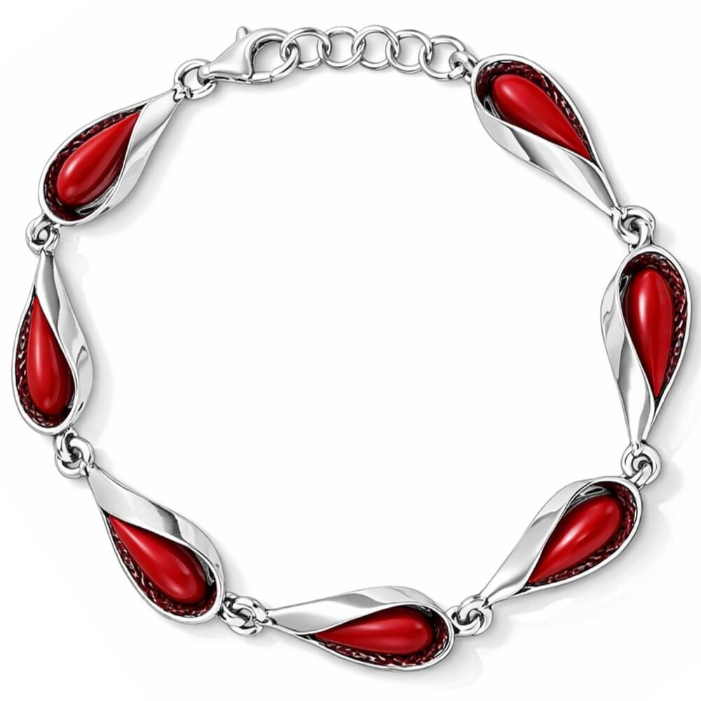 Bransoletka srebrna z koralem regulowana Srebro 925