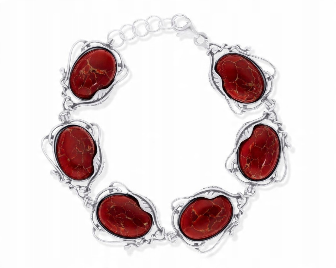 Bransoletka srebrna z koralem szeroka Srebro 925