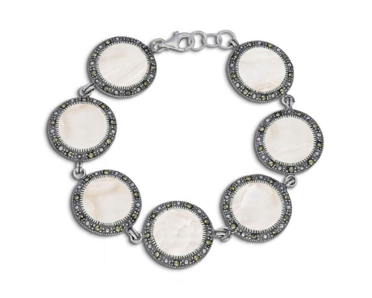 Bransoletka srebrna z masą perłową i markazytami Srebro 925