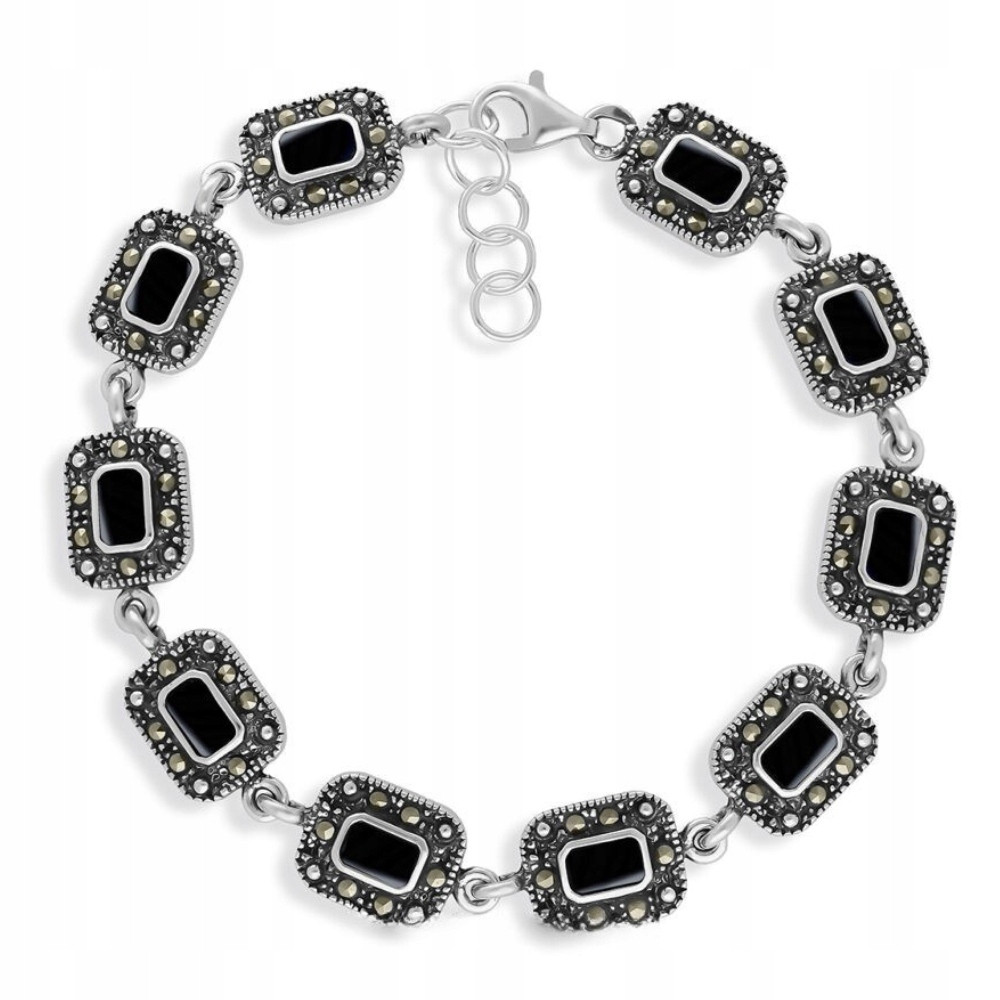Bransoletka srebrna z onyksem i markazytami Srebro 925
