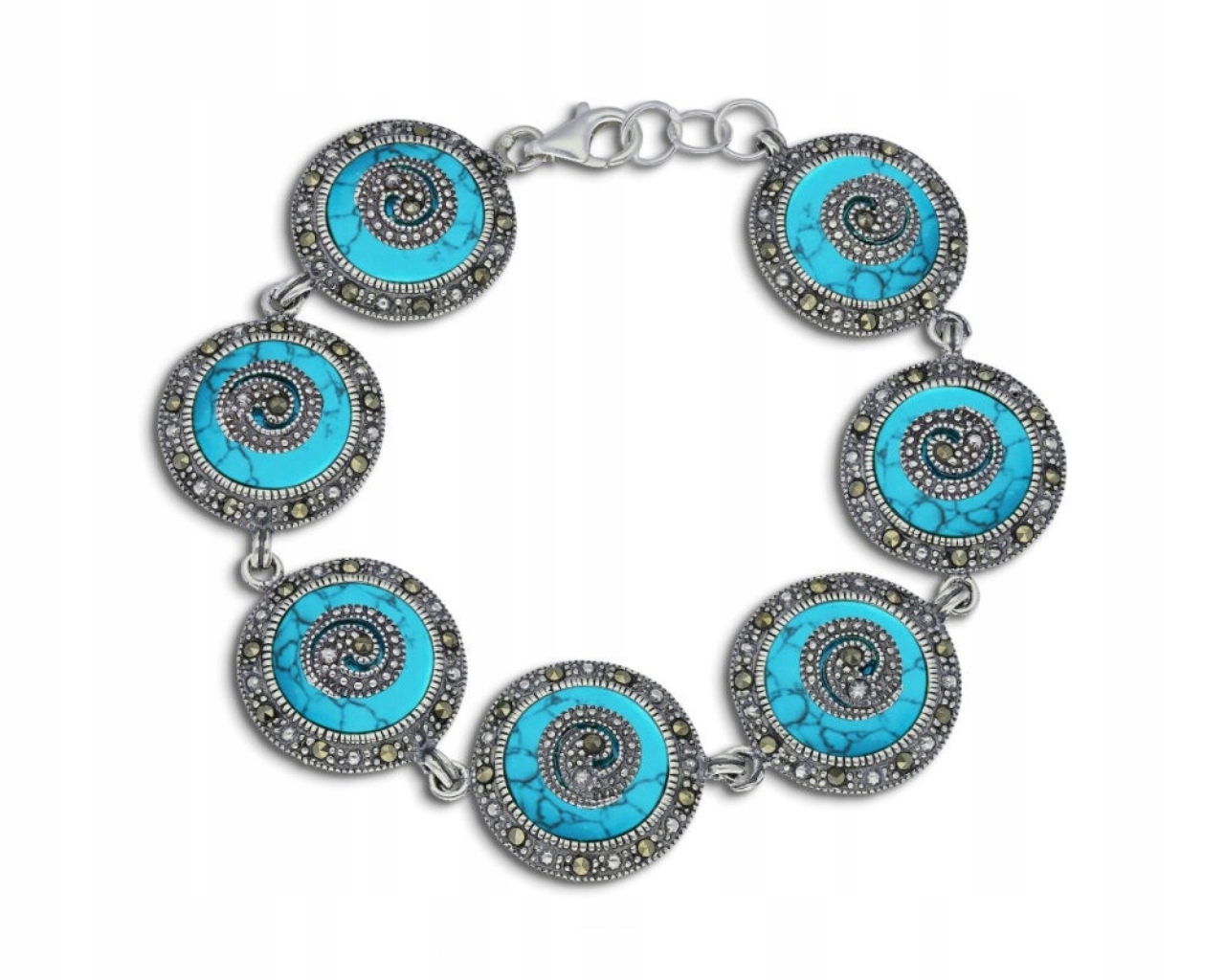 Bransoletka srebrna z turkusem i markazytami Srebro 925