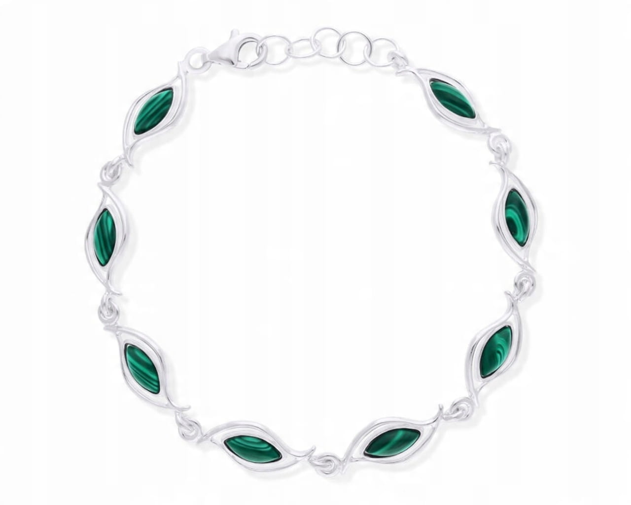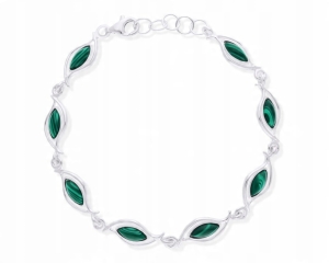 Bransoletka srebrna z zielonymi malachitami Srebro 925
