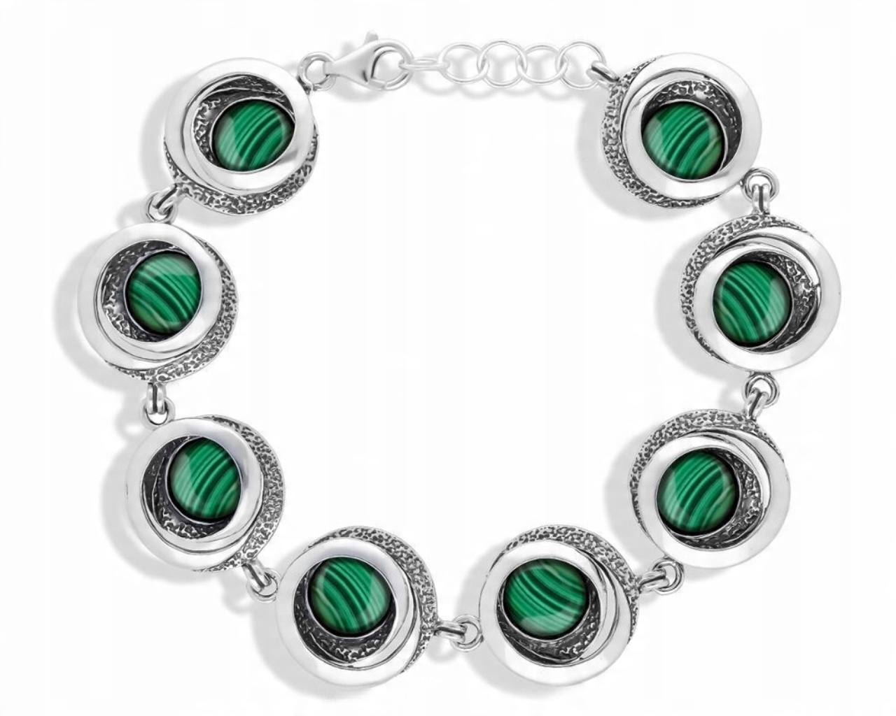 Bransoletka srebrna z zielonymi malachitami Srebro 925