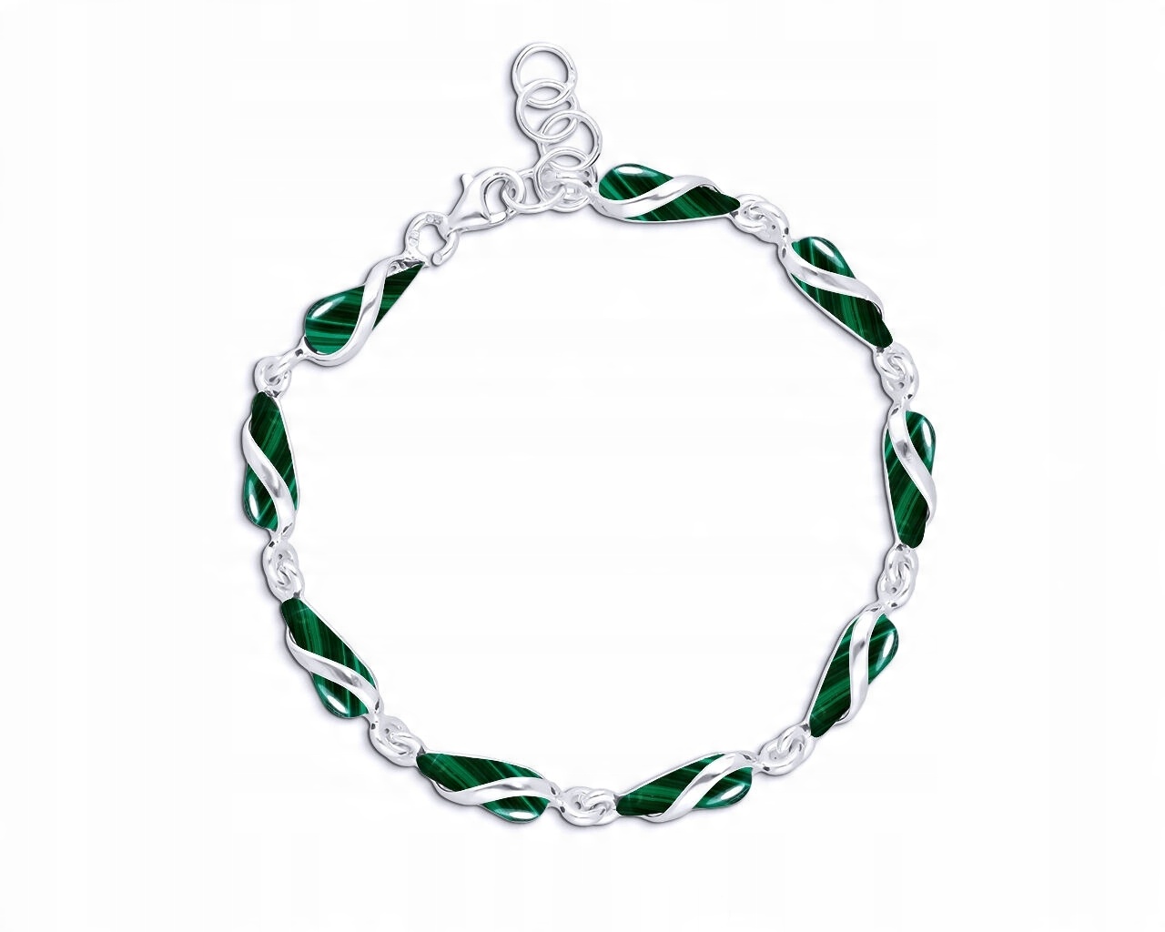 Bransoletka srebrna z zielonymi malachitami Srebro 925