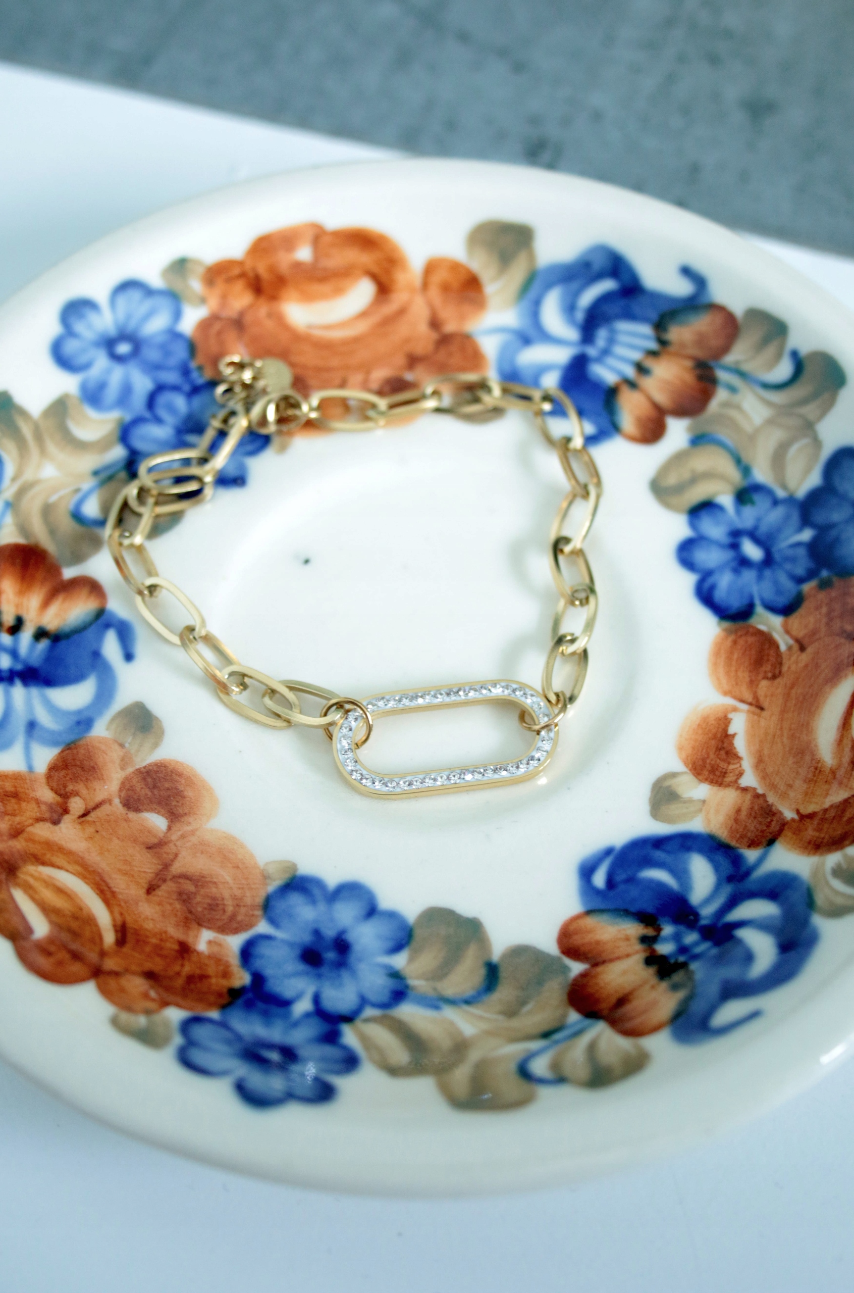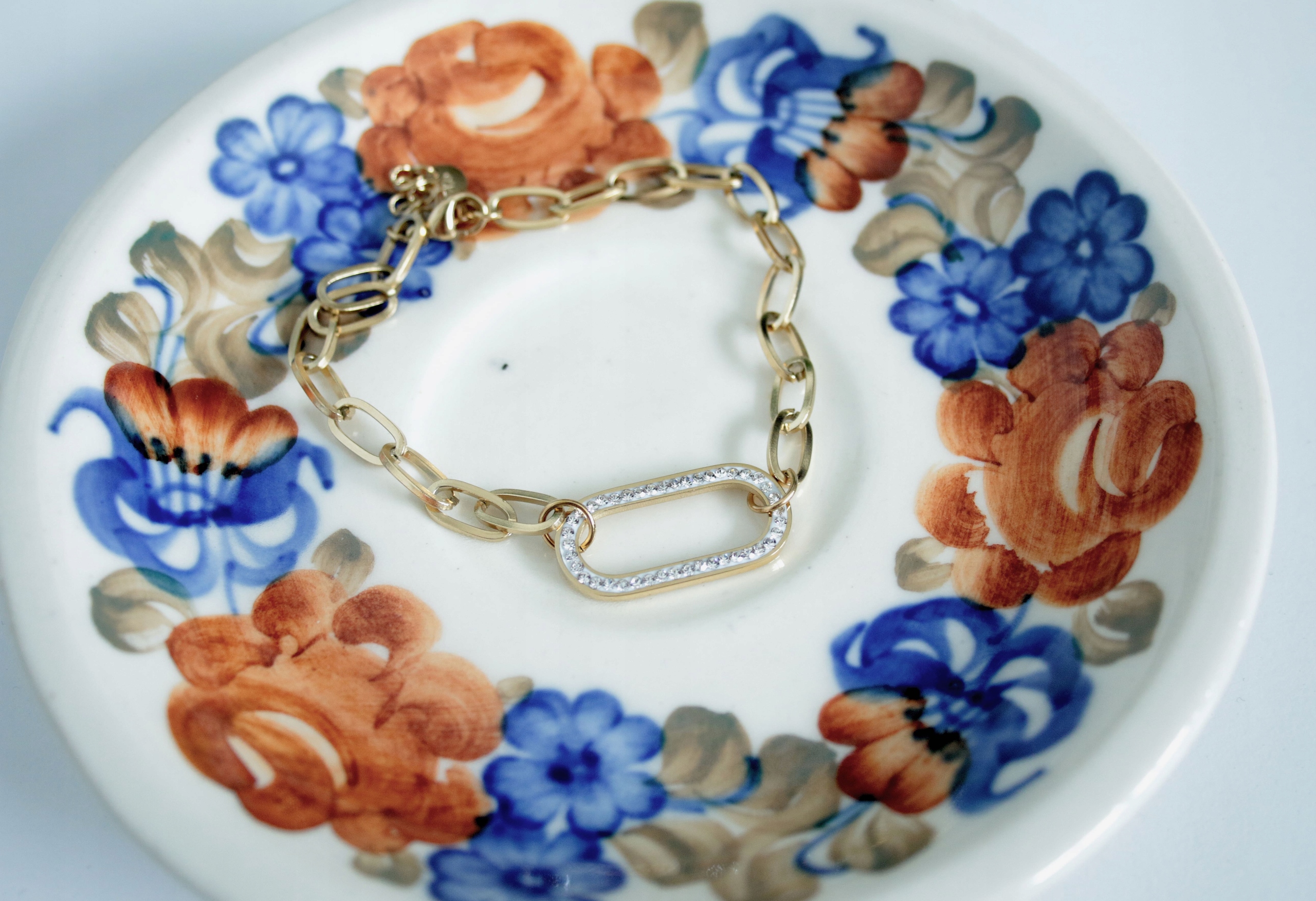 Bransoletka złota stal chirurgiczna owalnym kółkiem