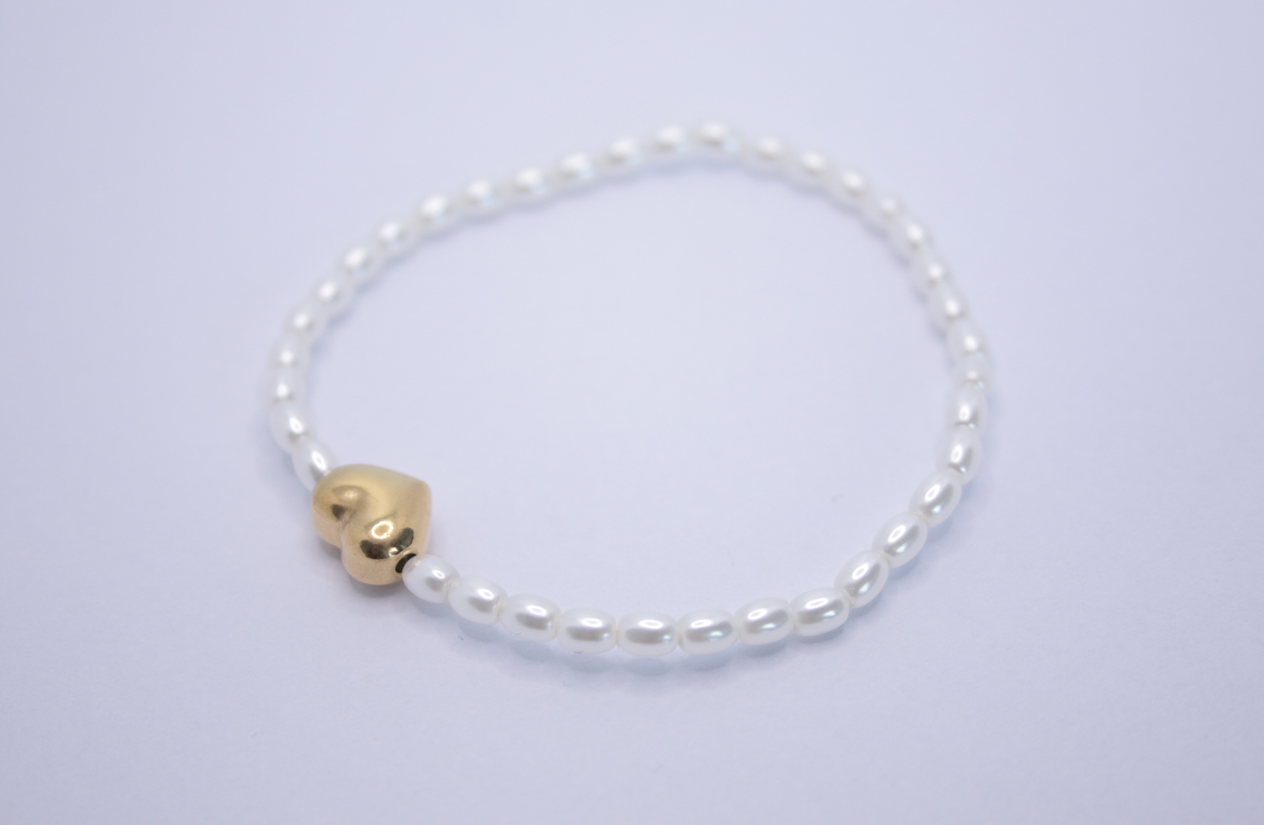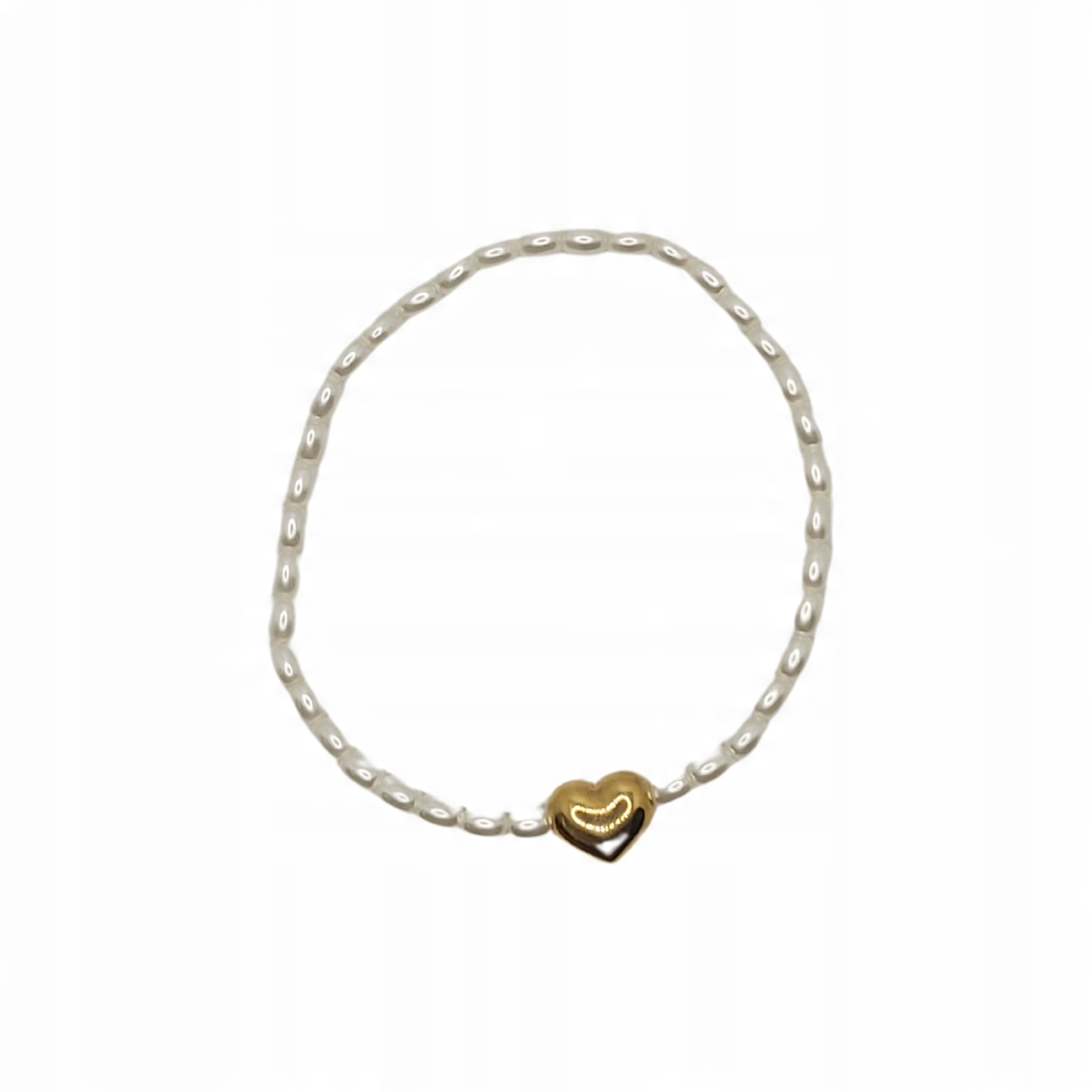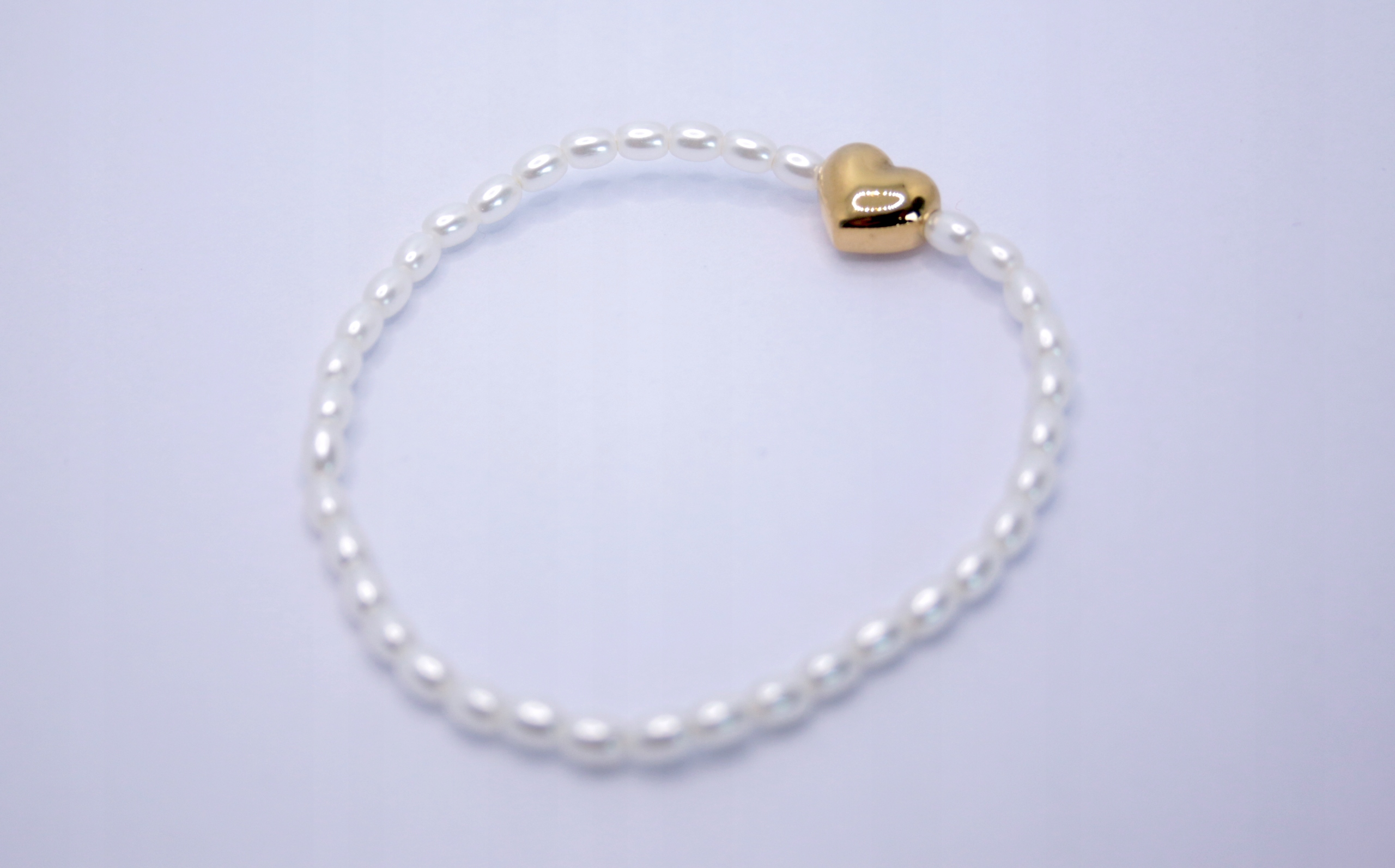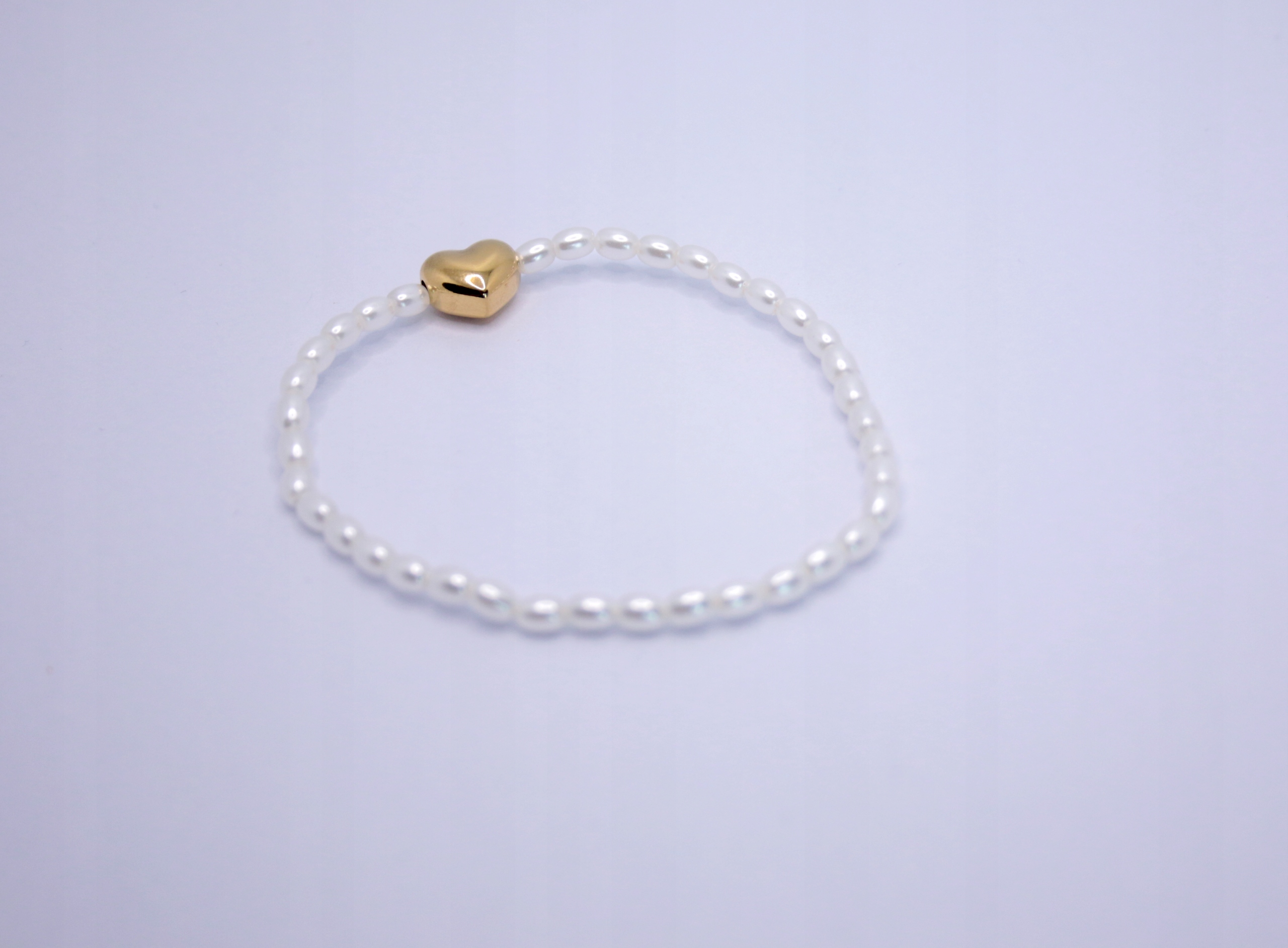 Bransoletka z małymi perełkami zdobiona serduszkiem. Delikatny akcent, który nadaje wyjątkowego blasku każdej stylizacji. Doskonała opcja, by podkreślić delikatność i styl w każdej okazji.