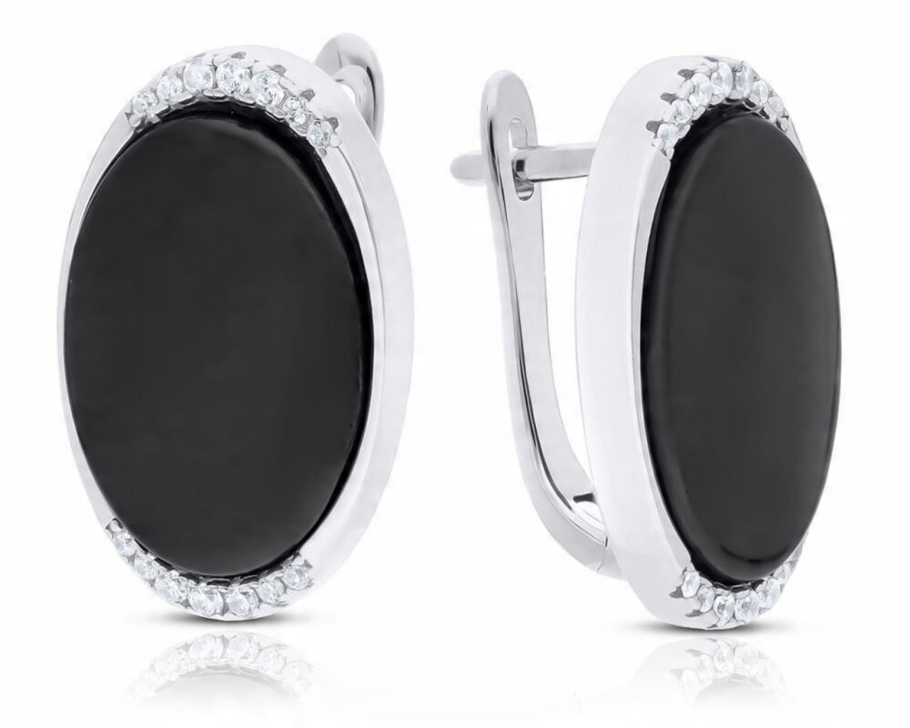 Kolczyki srebrne angielskie z ceramiką owalne Srebro 925