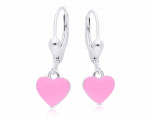 Kolczyki srebrne dla Dziewczynki serca różowe Srebro 925