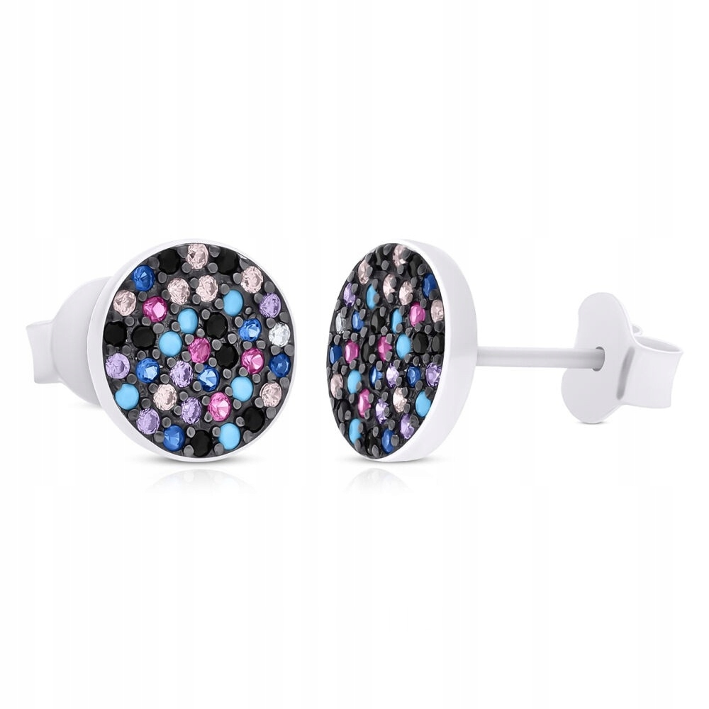 Kolczyki srebrne kolorowe cyrkonie sztyfty Srebro 925