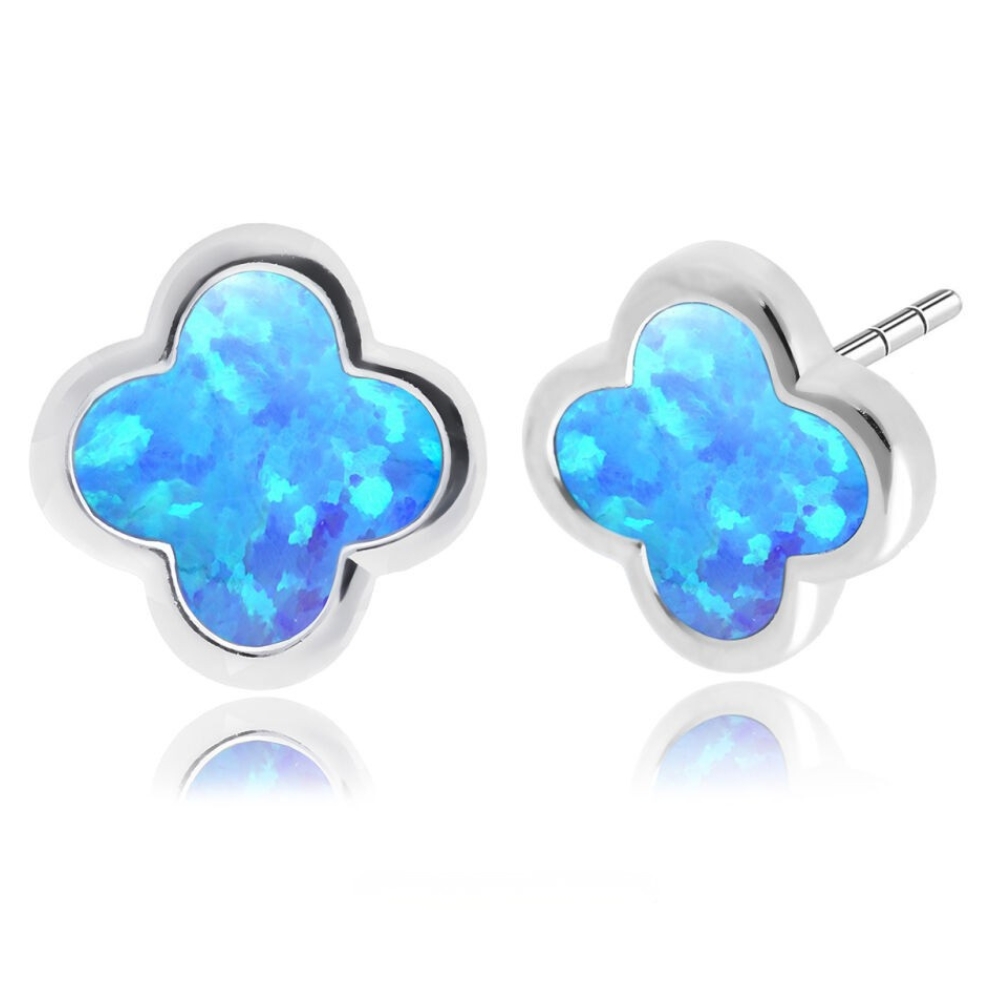 Kolczyki srebrne koniczyny z opalem Srebro 925