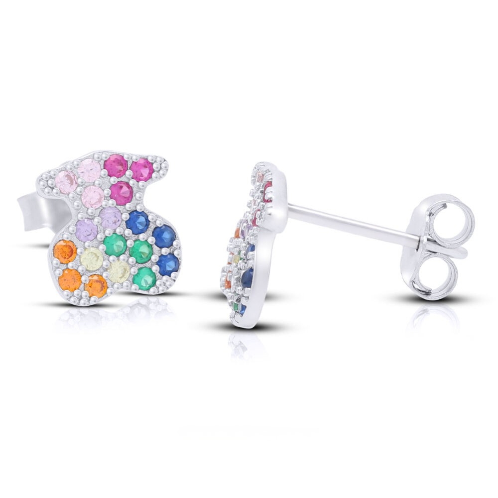 Kolczyki srebrne misie kolorowe cyrkonie Srebro 925