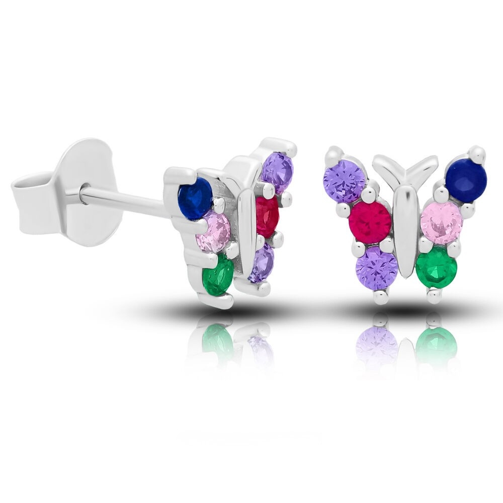 Kolczyki srebrne motyle kolorowe cyrkonie Srebro 925