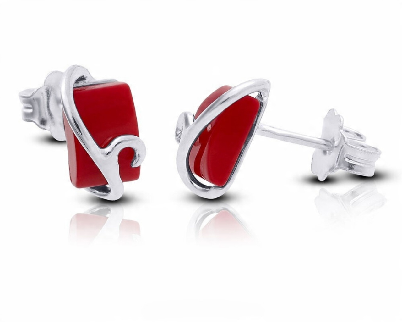 Kolczyki srebrne na sztyfcie z koralem Srebro 925