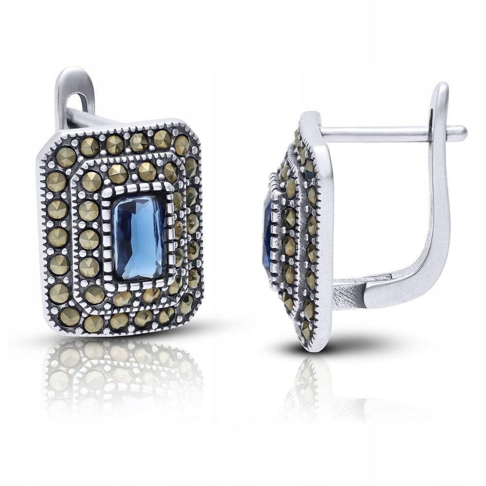 Kolczyki srebrne niebieska cyrkonia i markazyty Srebro 925