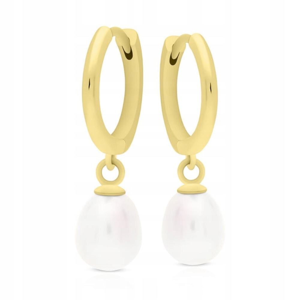 Kolczyki srebrne pozłacane kółka z perłą Srebro 925