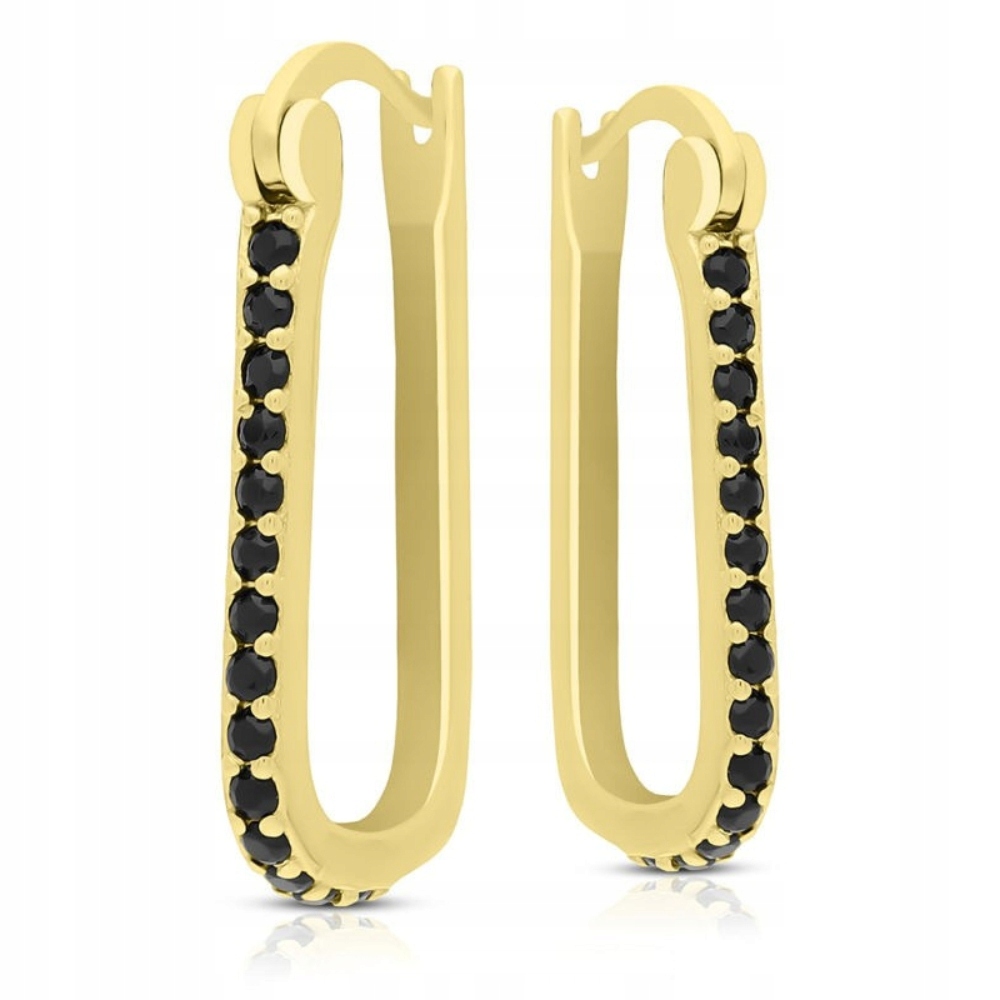 Kolczyki srebrne pozłacane wiszące czarne cyrkonie Srebro 925