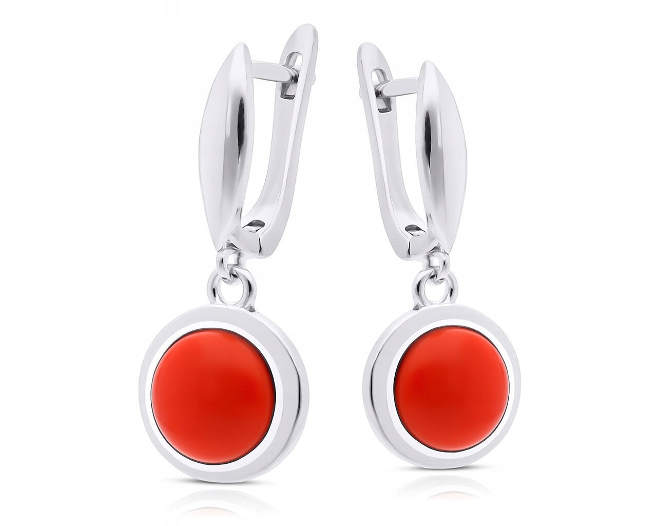 Kolczyki srebrne wiszące angielskie z koralem Srebro 925