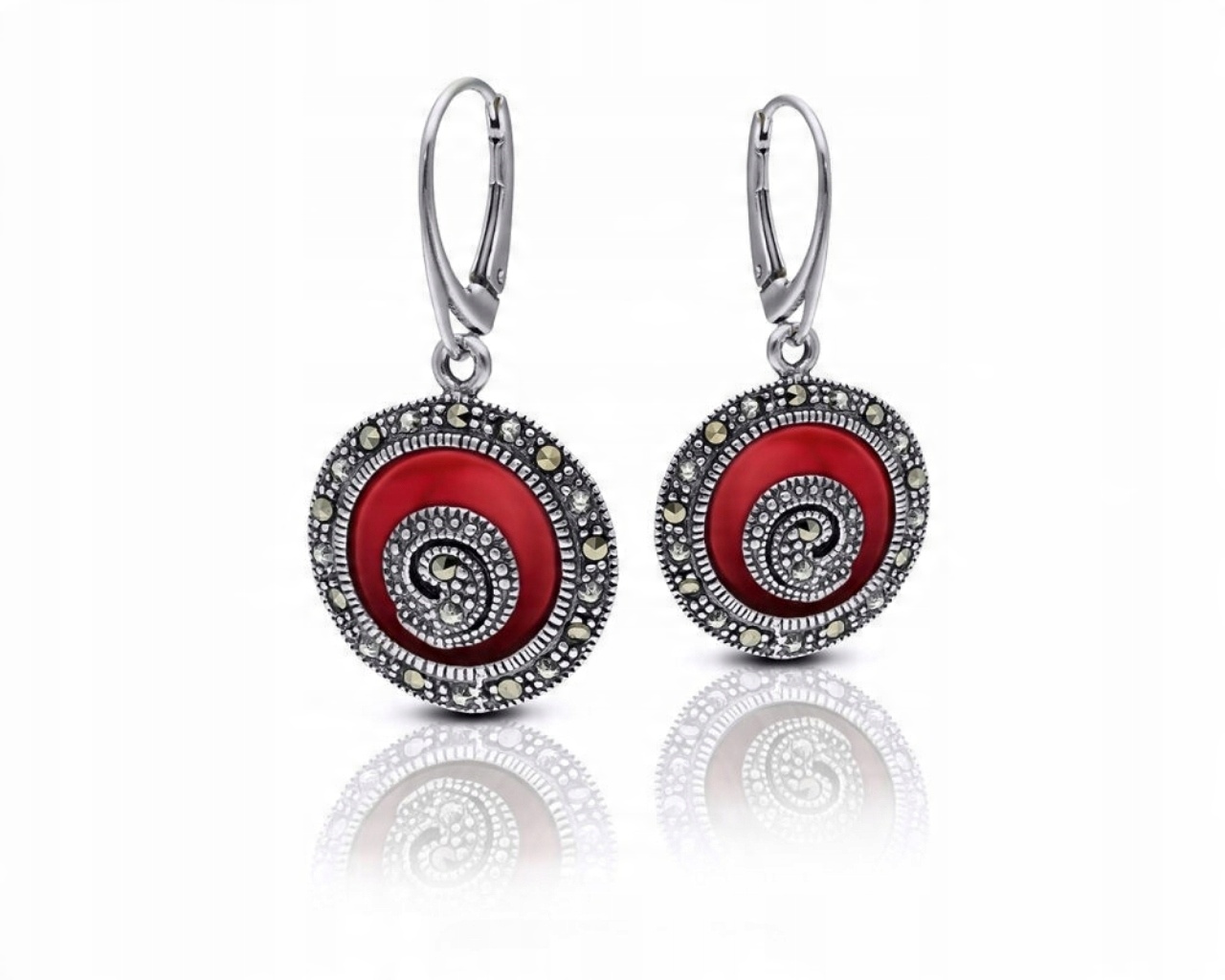 Kolczyki srebrne wiszące koral i markazyty Srebro 925