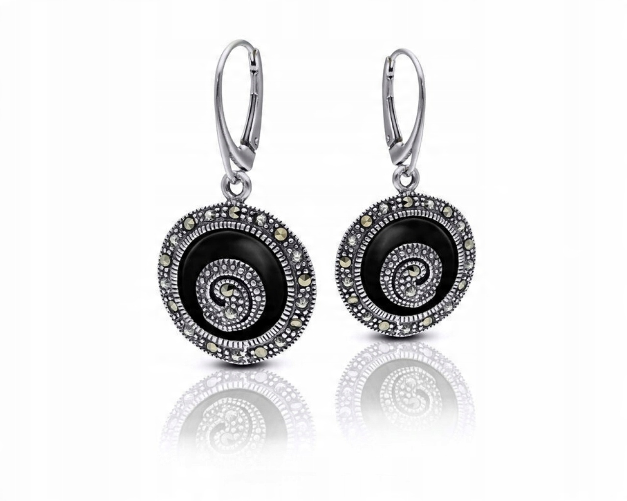 Kolczyki srebrne wiszące onyks i markazyty Srebro 925