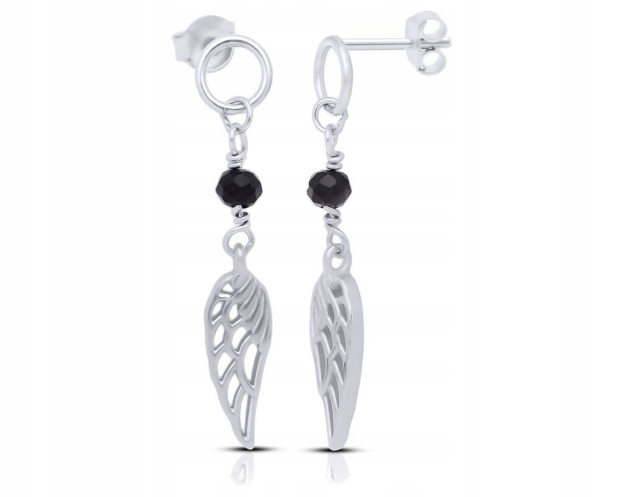 Kolczyki srebrne wiszące skrzydła czarna cyrkonia Srebro 925