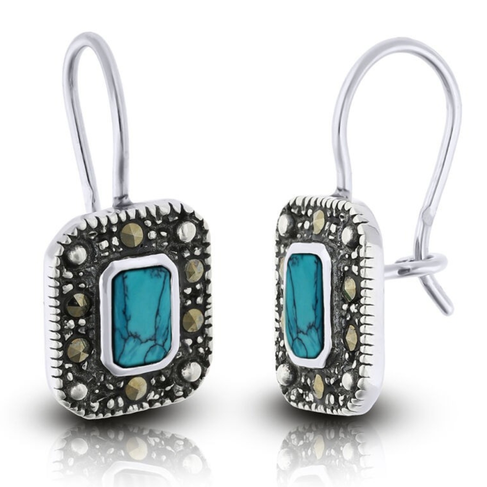 Kolczyki srebrne wiszące turkus i markazyty Srebro 925
