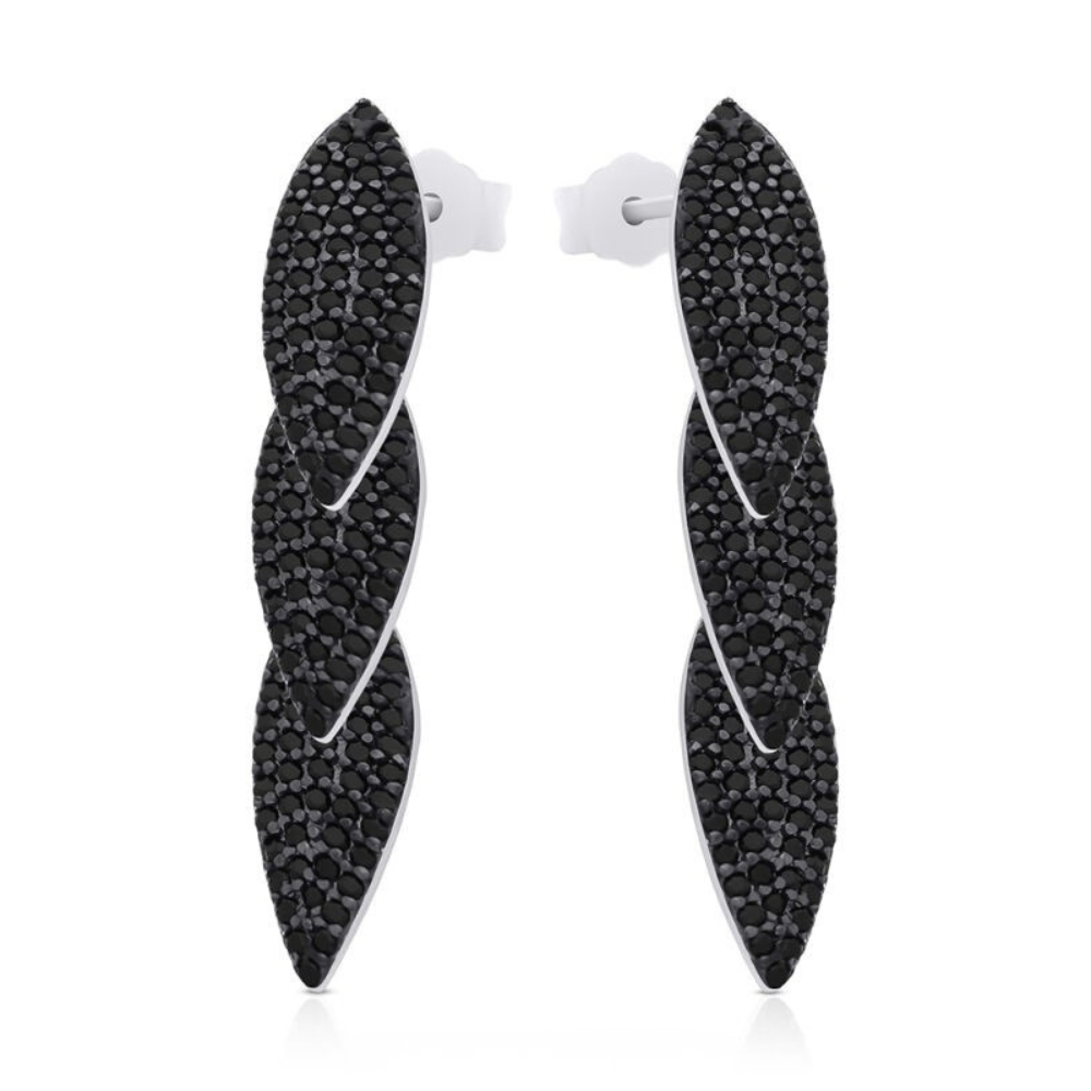 Kolczyki srebrne wiszące z czarnymi cyrkoniami Srebro 925