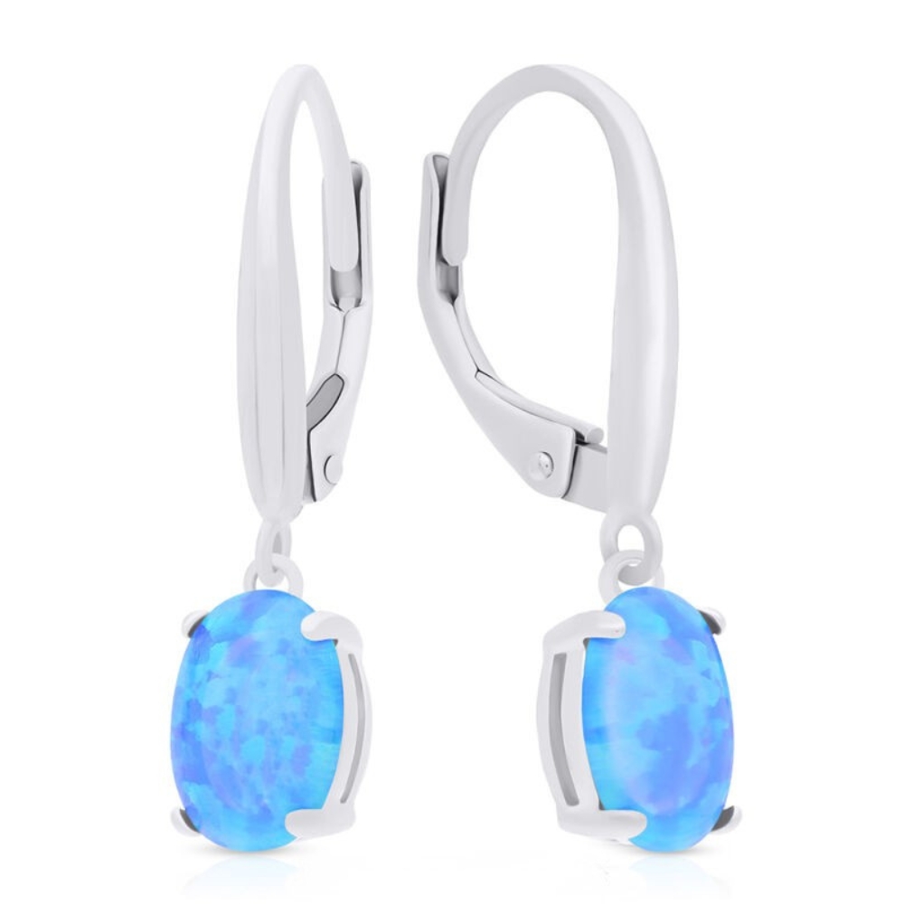 Kolczyki srebrne wiszące z opalem niebieskim Srebro 925