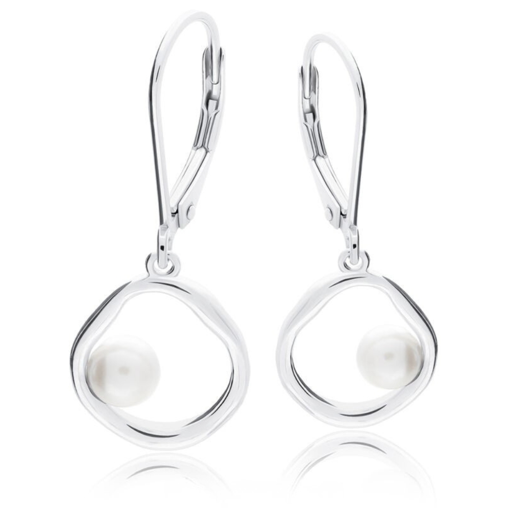 Kolczyki srebrne wiszące z perłą Srebro 925
