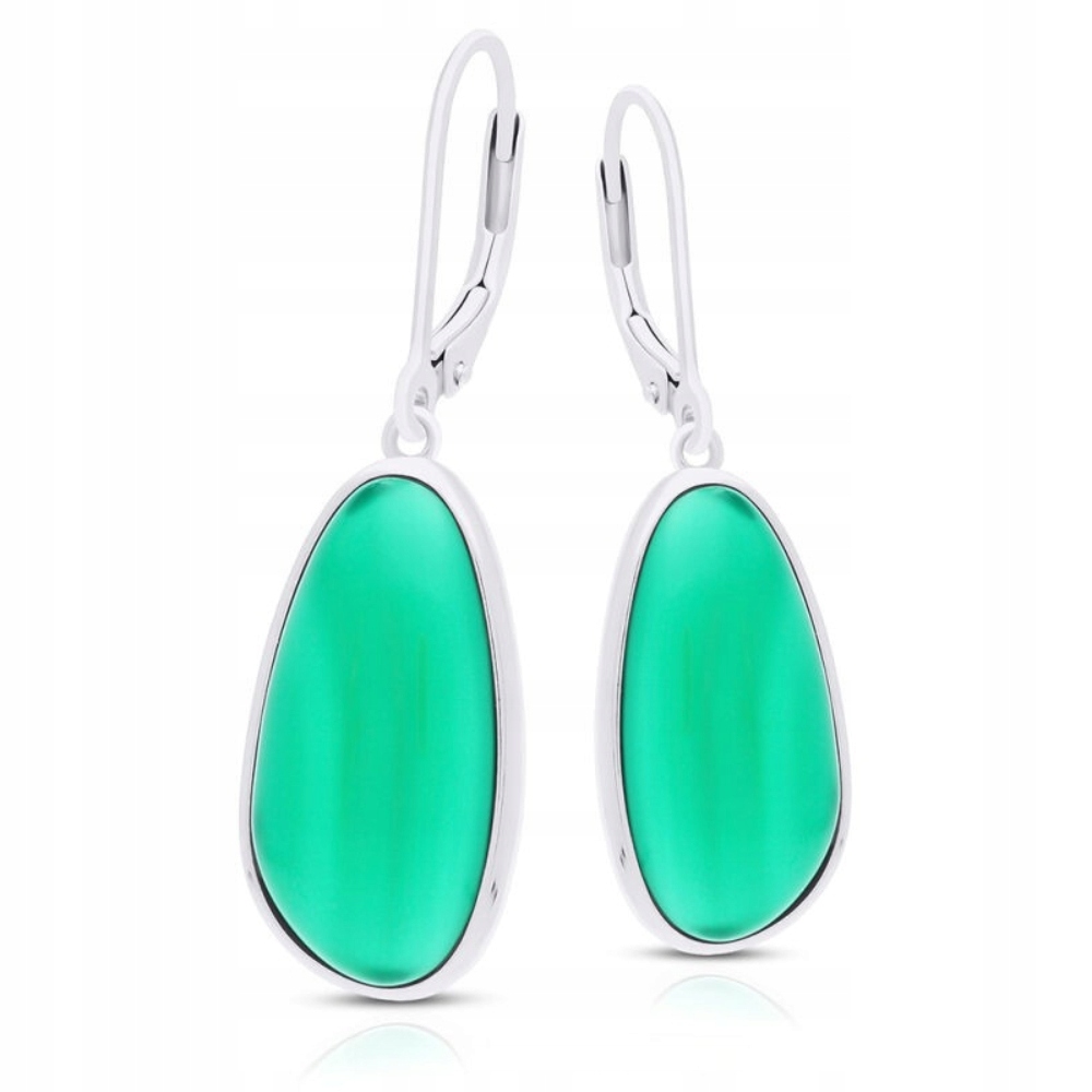 Kolczyki srebrne wiszące z zielonym agatem Srebro 925