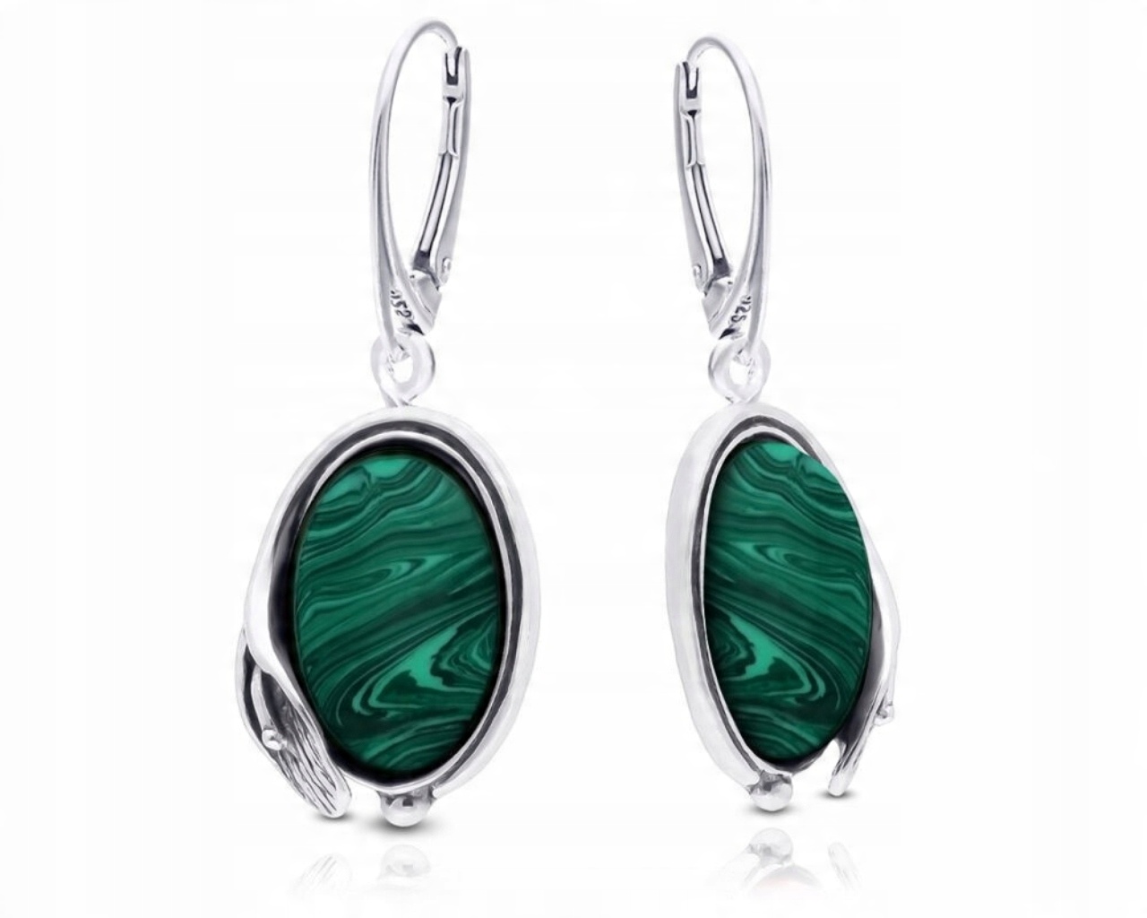 Kolczyki srebrne wiszące z zielonym malachitem Srebro 925
