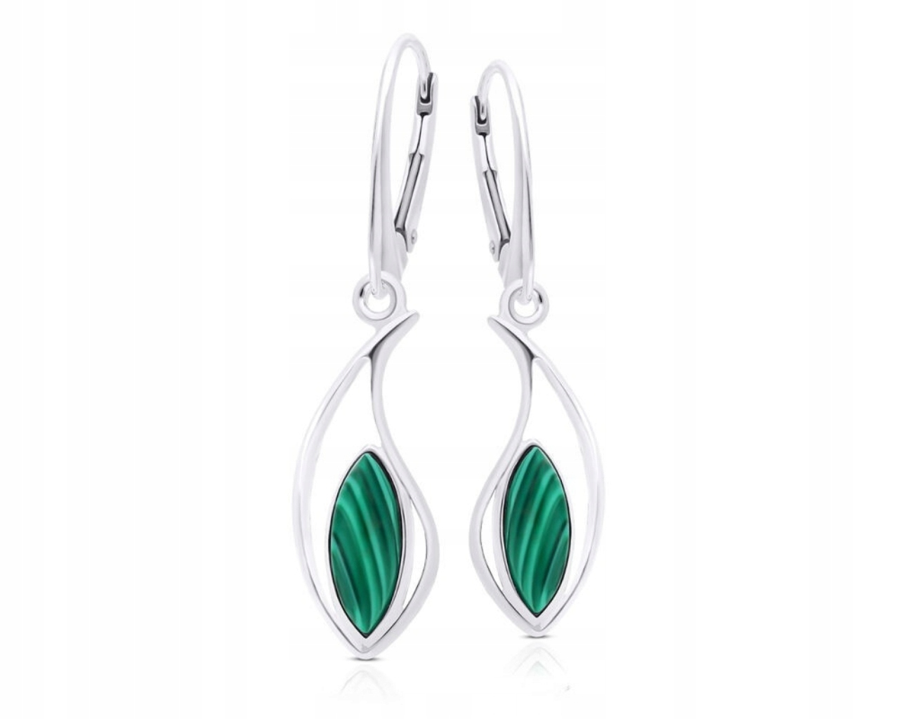 Kolczyki srebrne wiszące z zielonymi malachitami Srebro 925