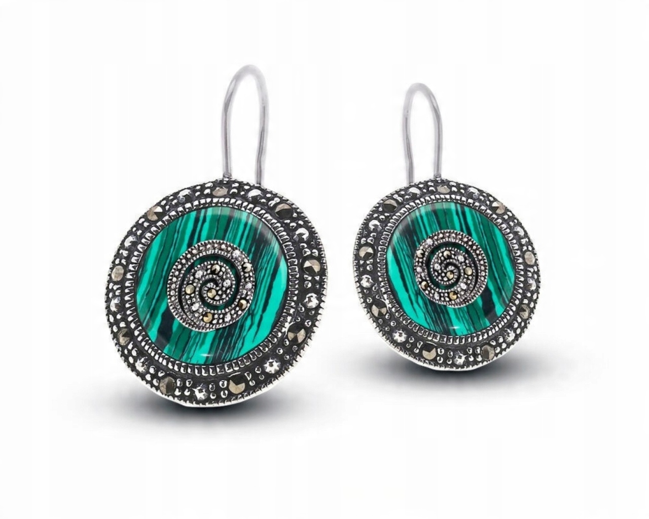 Kolczyki srebrne z dużym okrągłym malachitem Srebro 925