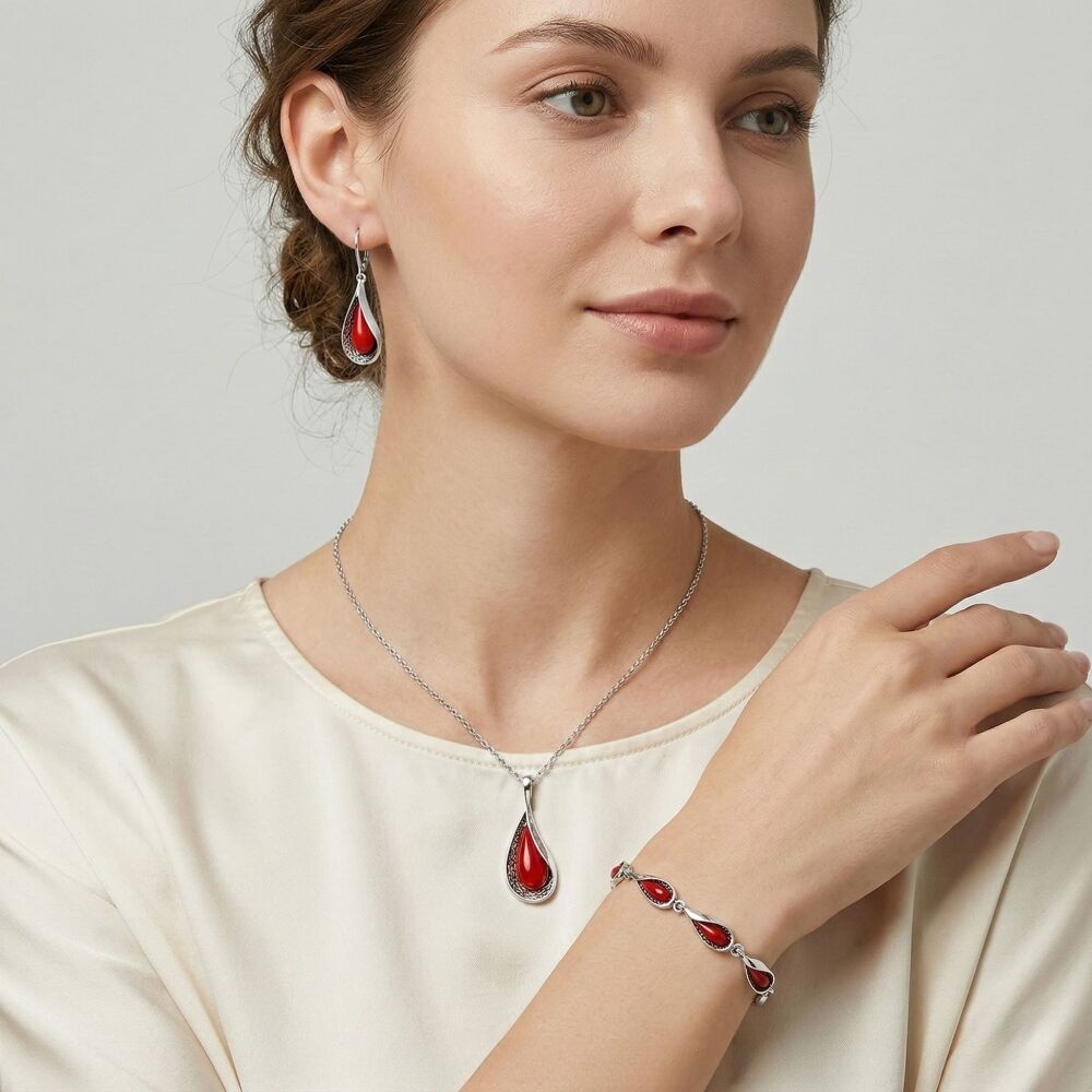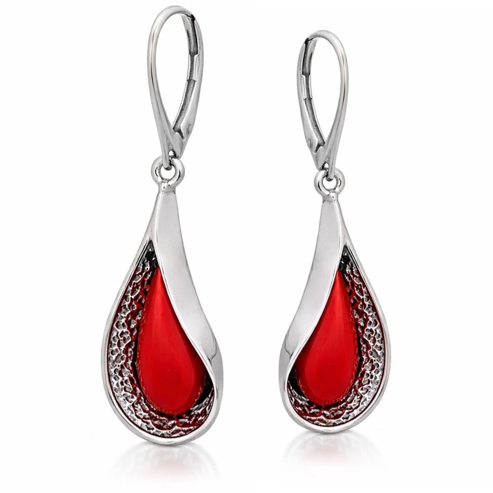 Kolczyki srebrne z koralem wiszące Srebro 925