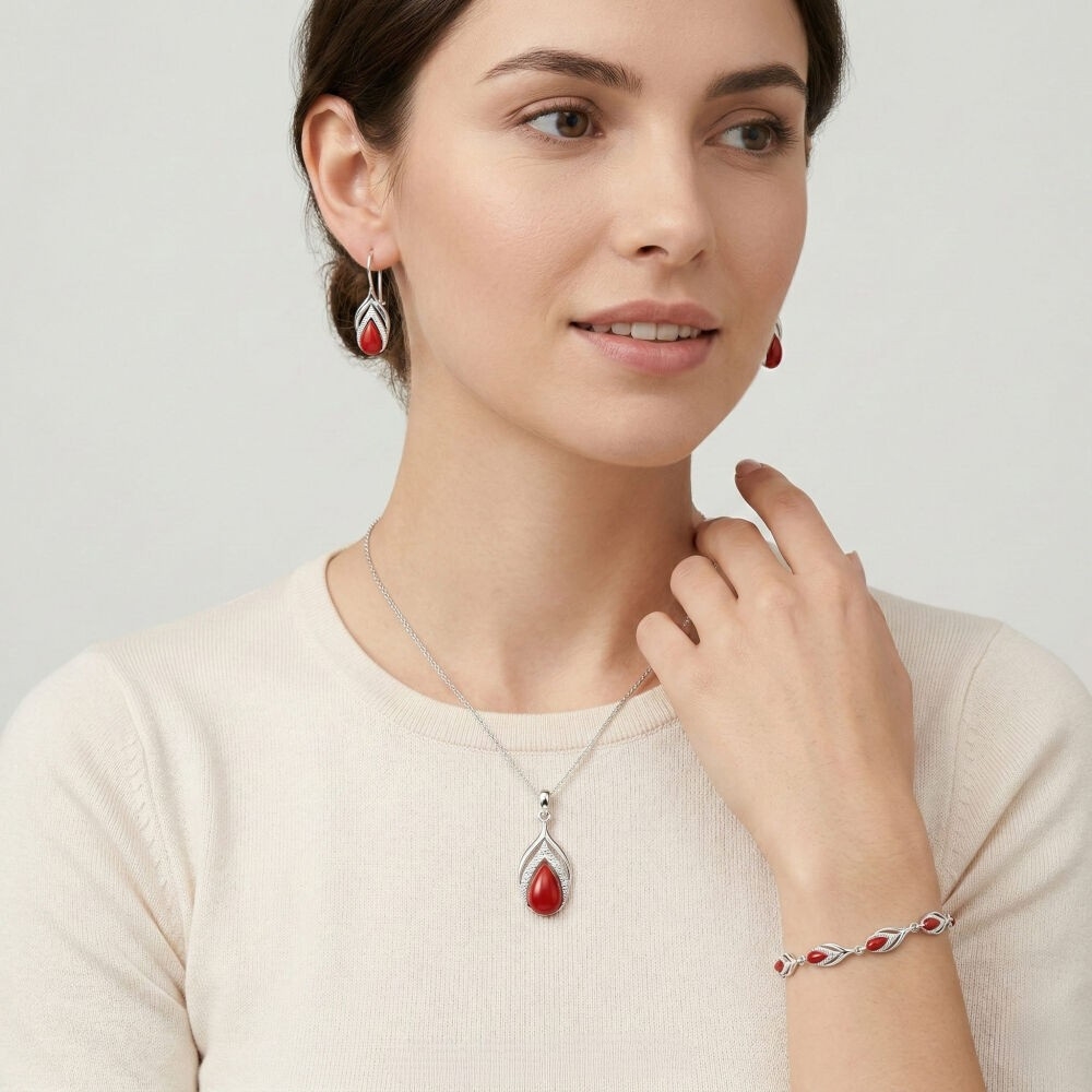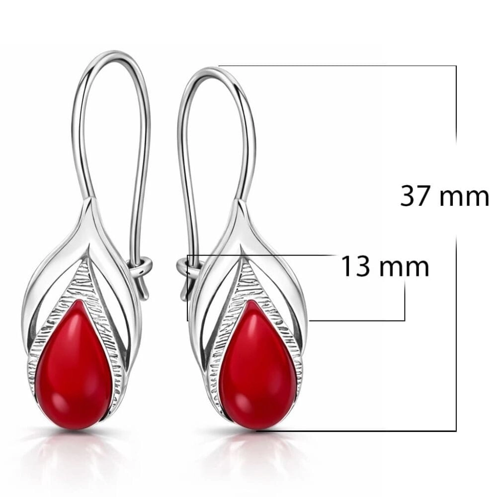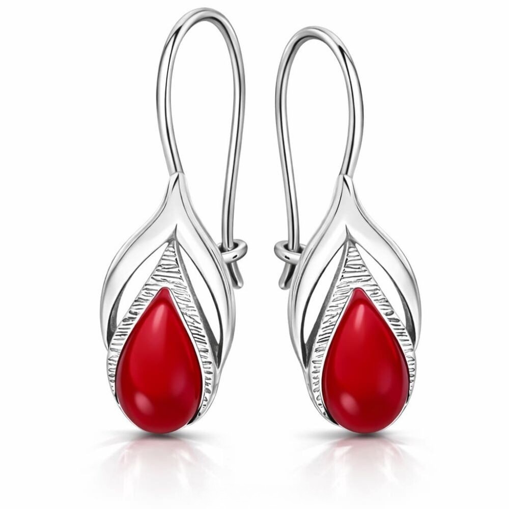 Kolczyki srebrne z koralem wiszące listki Srebro 925