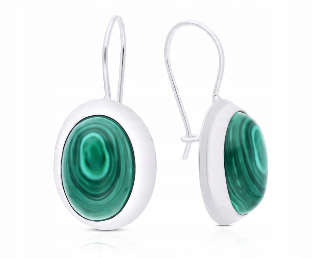 Kolczyki srebrne zielony malachit wiszące Srebro 925