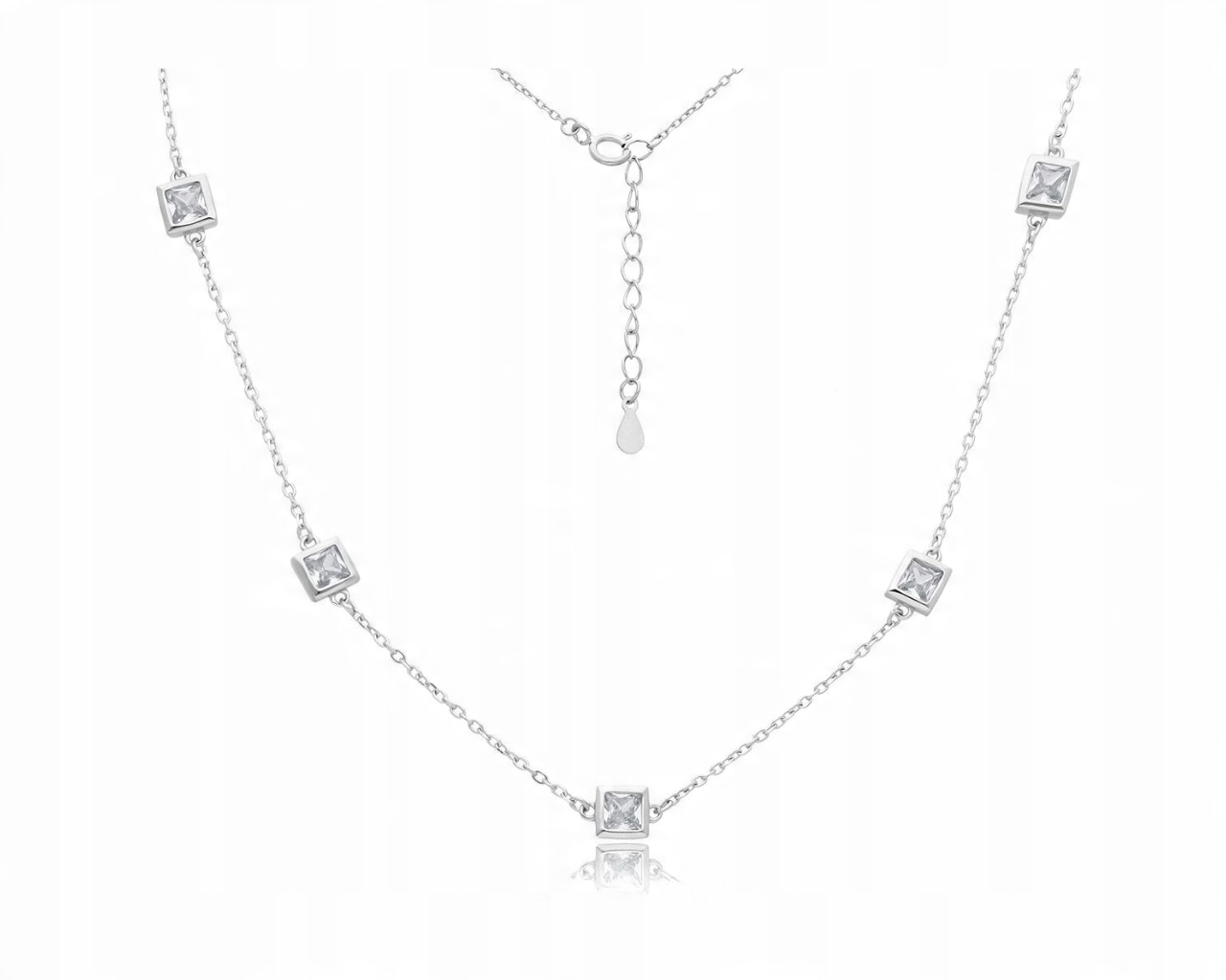 Naszyjnik srebrny duże kwadratowe cyrkonie Srebro 925
