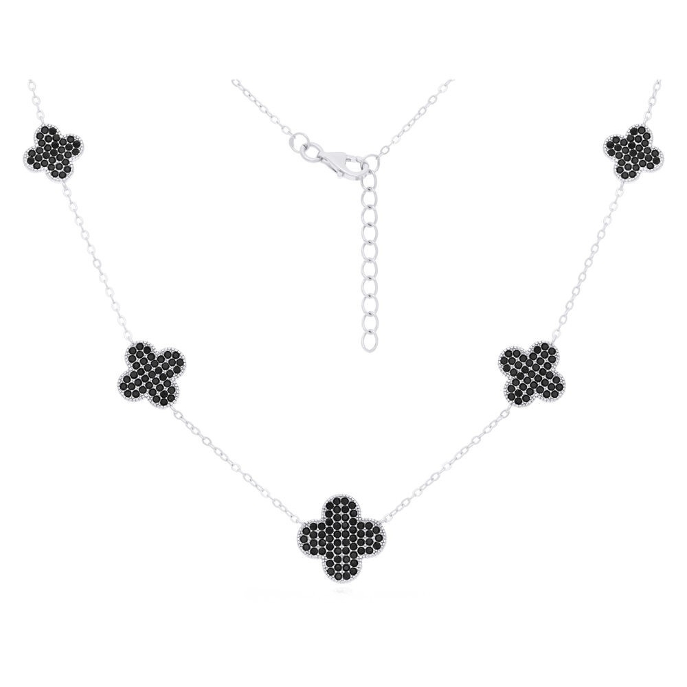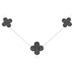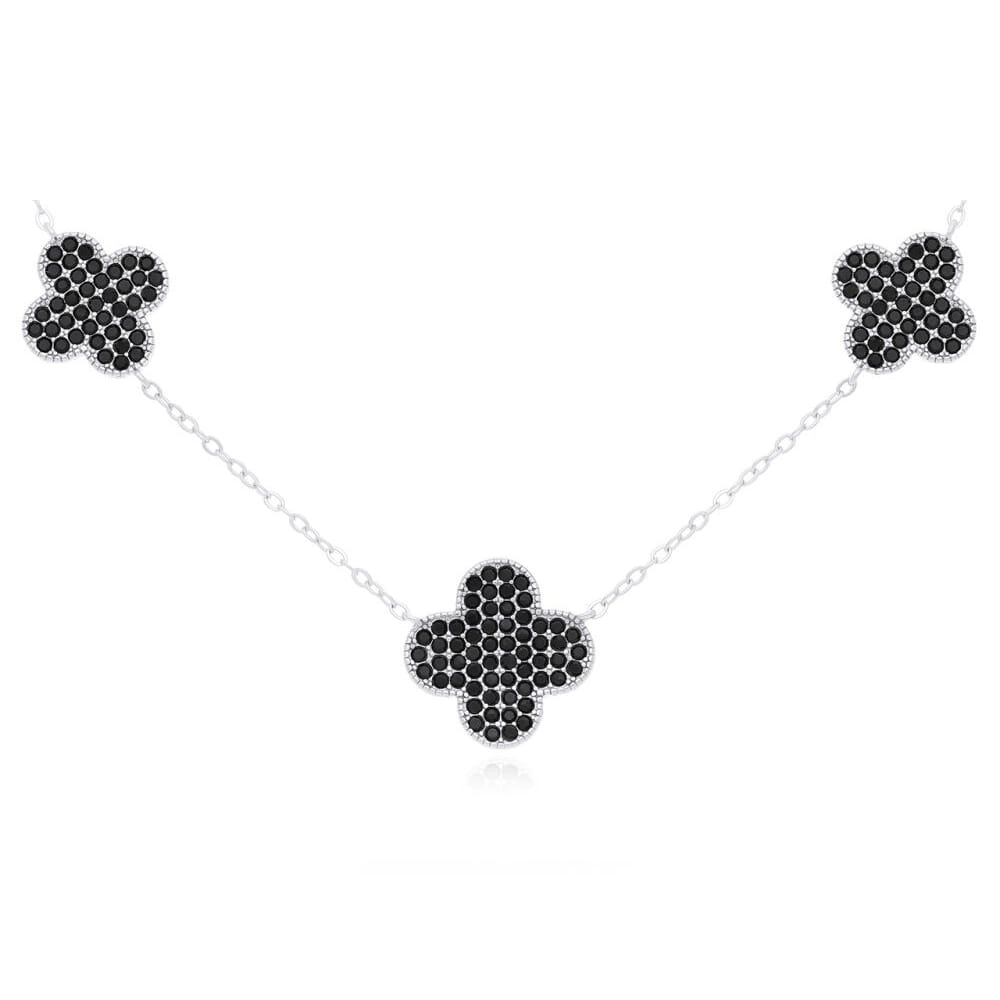 Naszyjnik srebrny koniczyny czarne cyrkonie Srebro 925