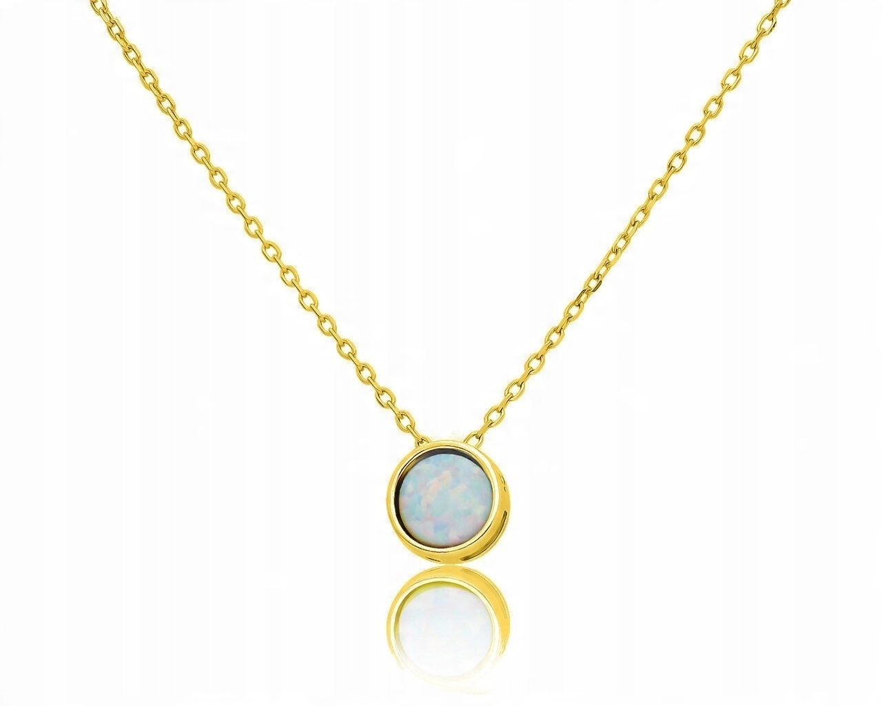 Naszyjnik srebrny pozłacany z białym opalem Srebro 925
