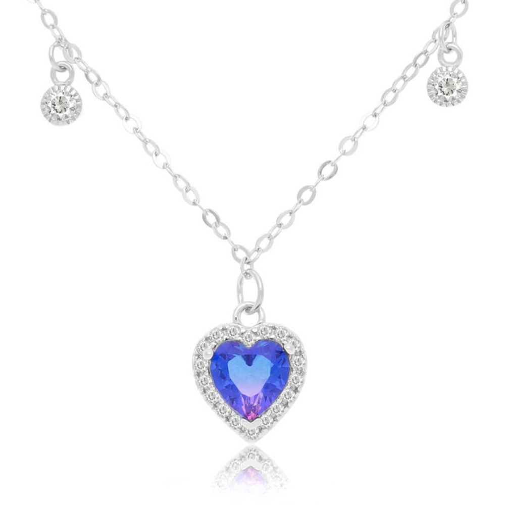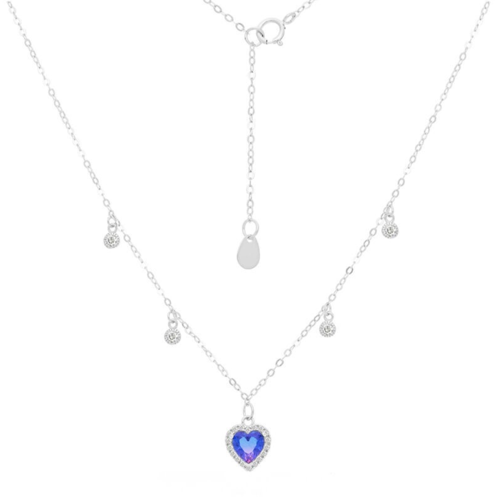 Naszyjnik srebrny serce turmalin i cyrkonie Srebro 925